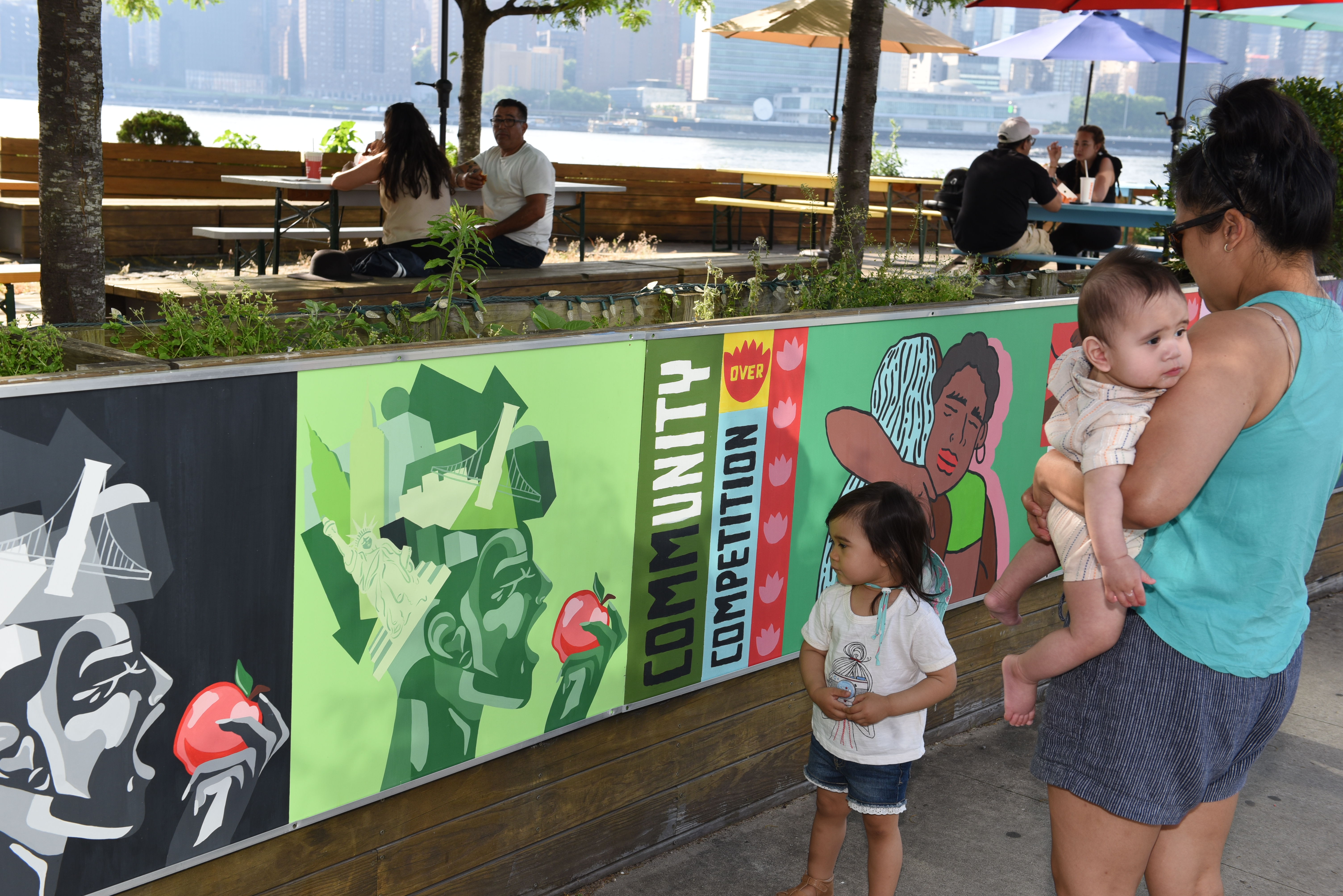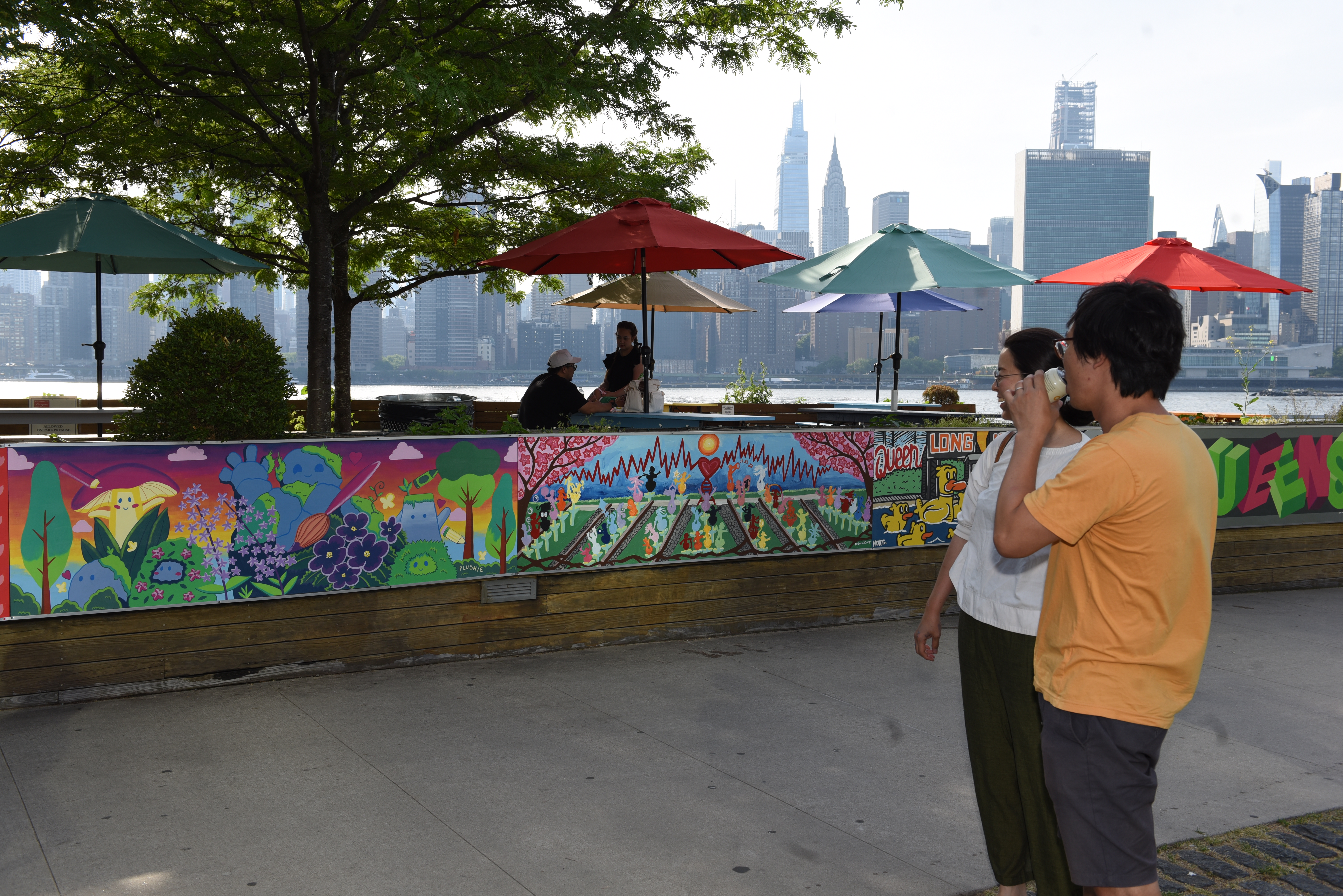 The first five murals were unveiled at the waterfront café last December, and seven more were unveiled at an event on Tuesday, June 4. Together, they create a visually stunning representation of Queens’ diversity and charm.