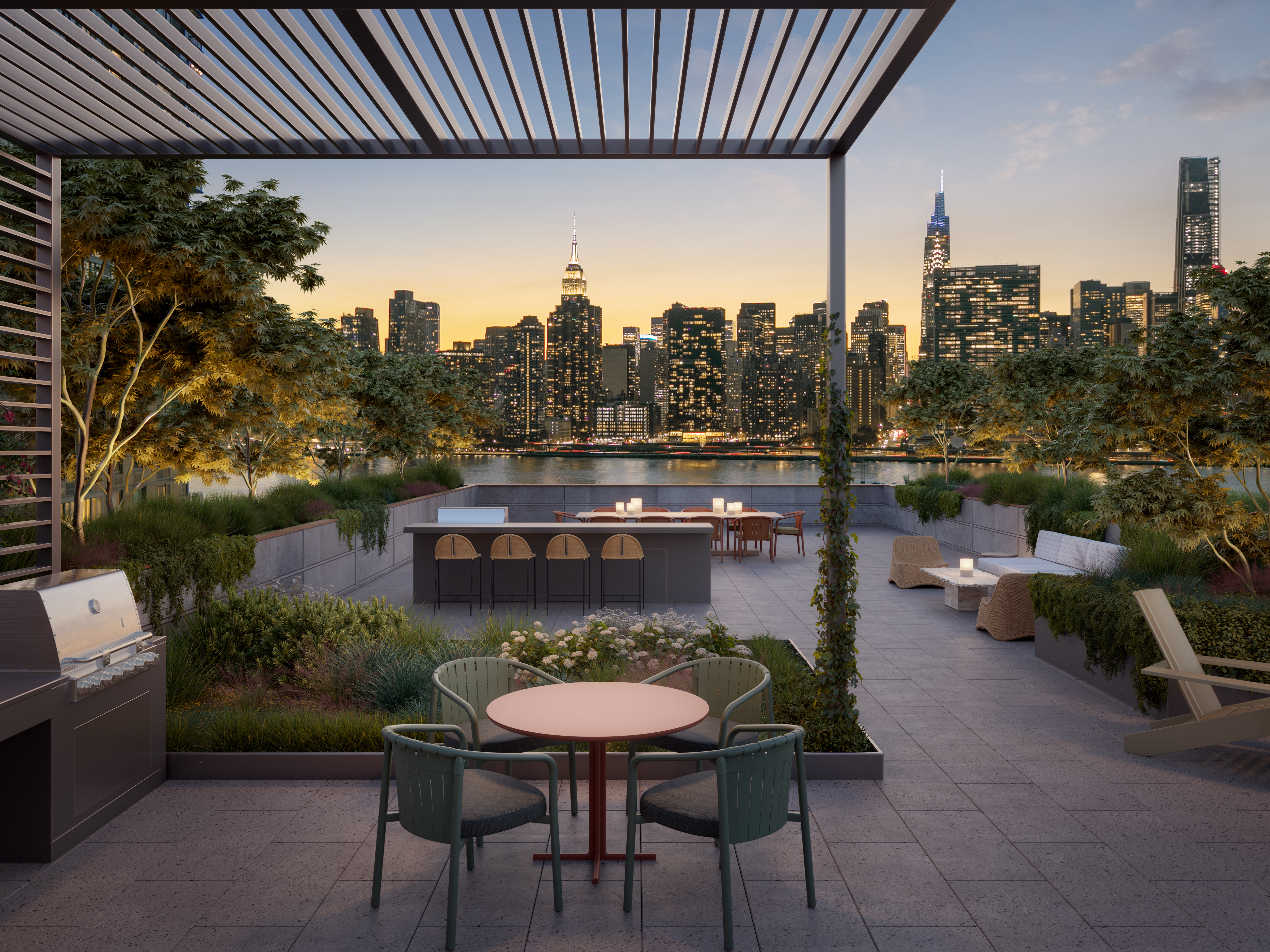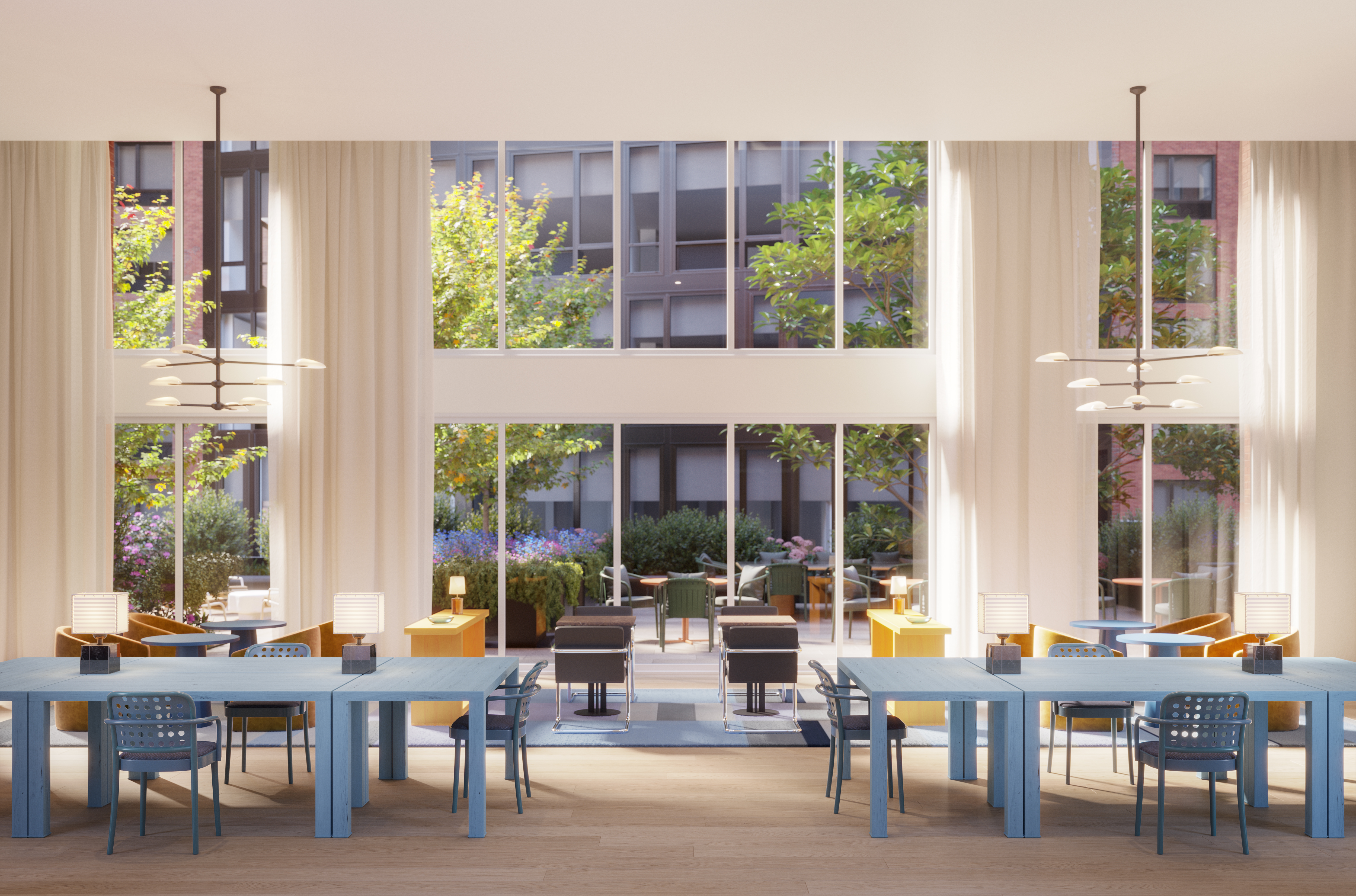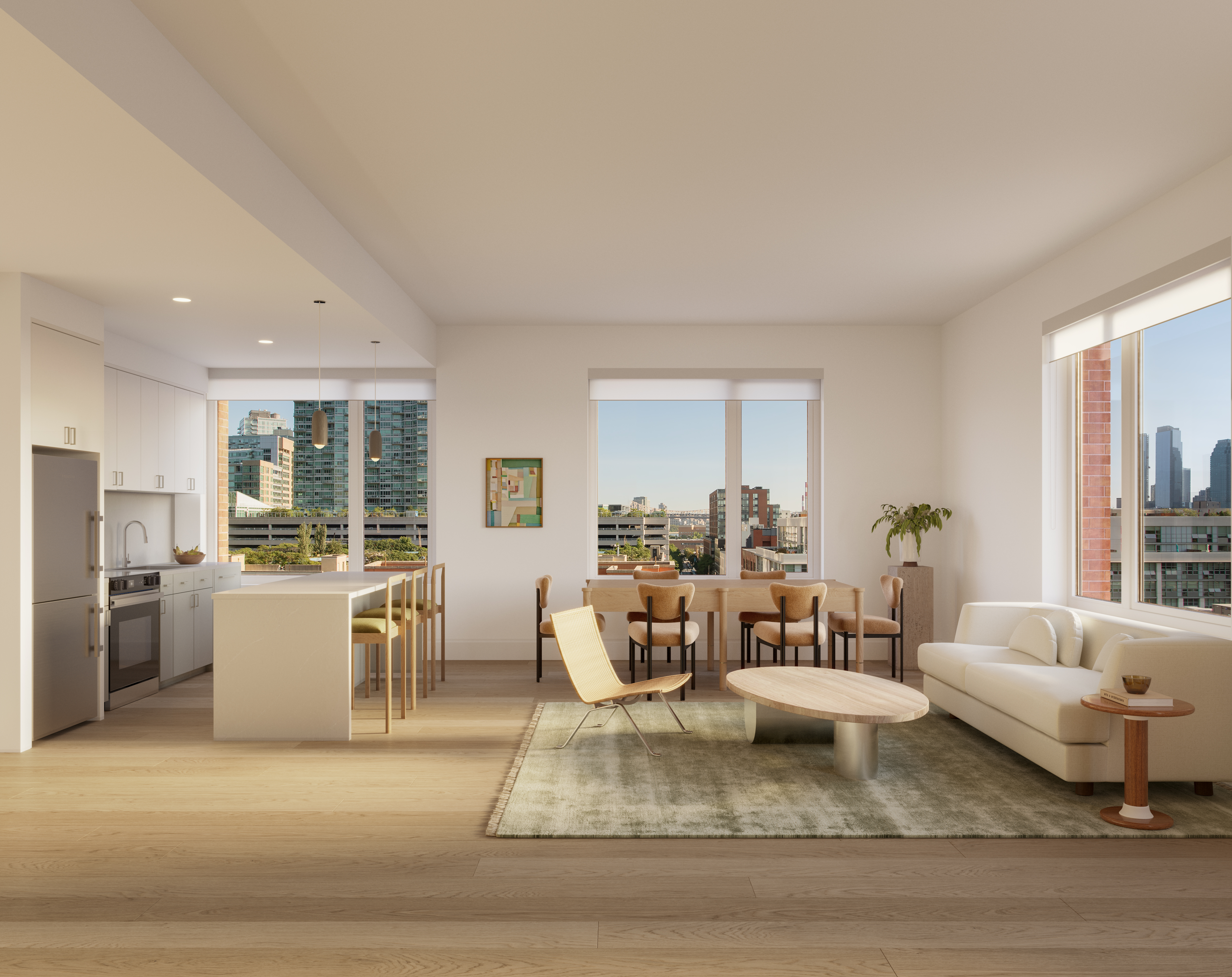 Each residence will feature quartz countertops and backsplashes, solar shades, an integrated dishwasher, a washer and dryer and a Level Smart Home System. Select units will also have a quartz waterfall-edge kitchen island, a private terrace, a customized closet buildout and window treatments for privacy. There is also an exclusive selection of units called “The Collection,” which have motorized shades, dimmer switches, enhanced lighting and upgraded tile finishes.