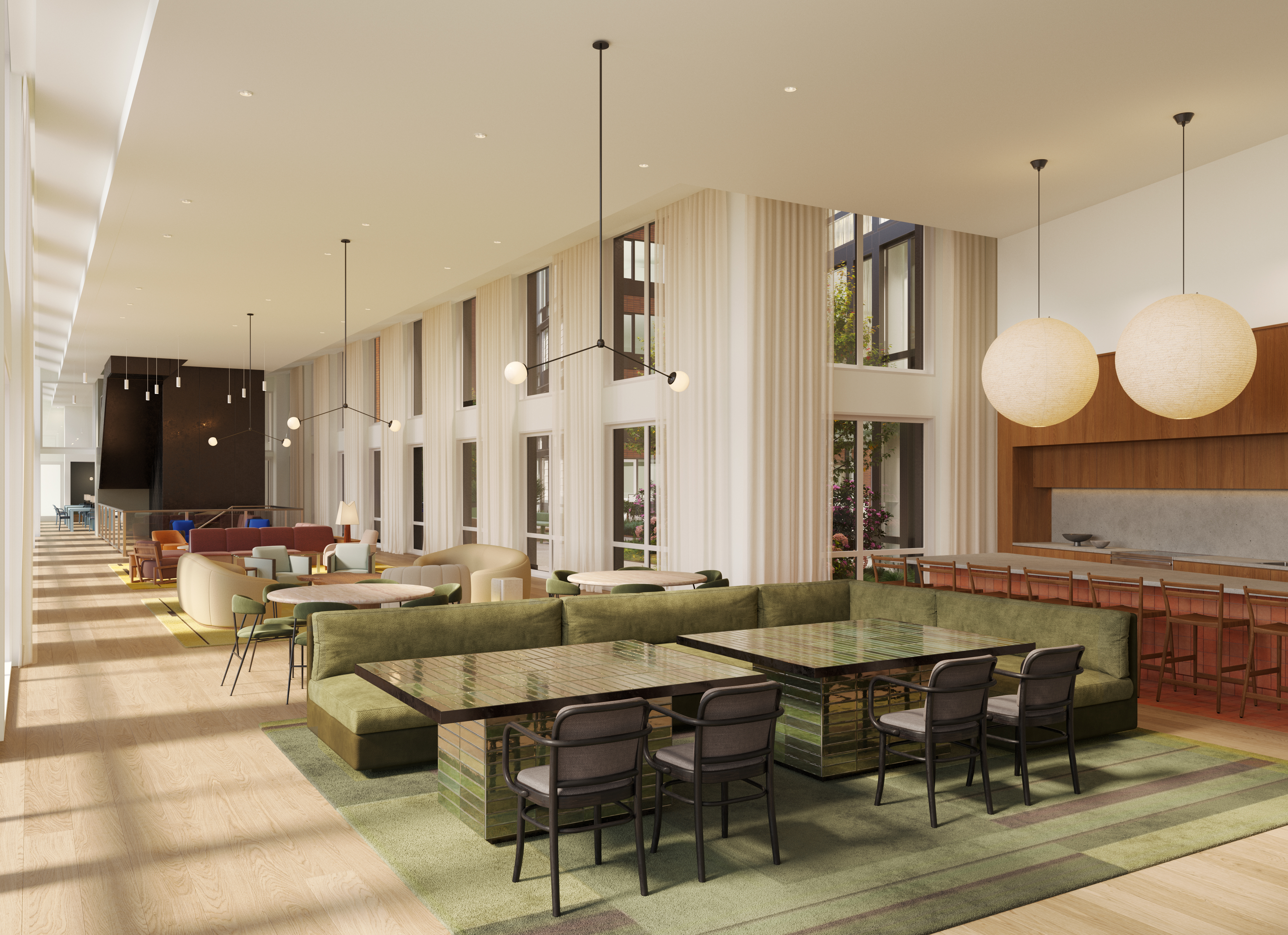 Premier amenities available to Jasper residents include multiple outdoor terraces, a pool, multiple landscaped courtyards, dedicated outdoor dining and BBQ areas, a gym with state-of-the-art fitness equipment and classes, a yoga studio, a game room, a residential lounge and demonstration kitchen, a co-working space, bike storage, package lockers, personal storage, green roofs and 112 parking spaces.