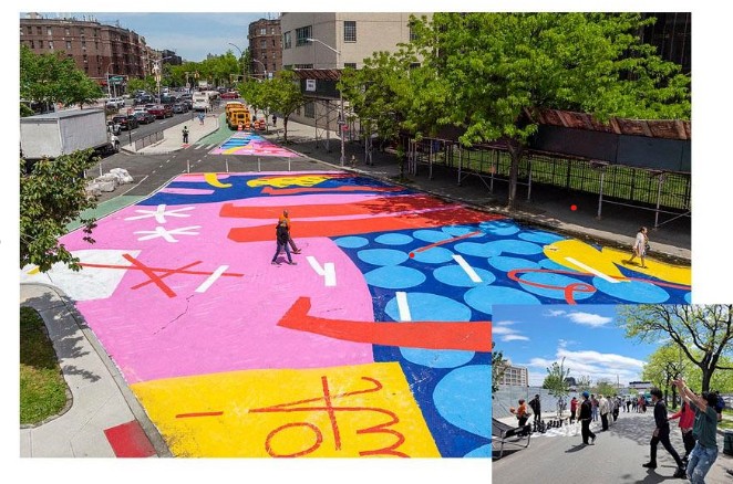 NYC street mural; image provided by NYC DOT. Inset the LaGuardia Community Greenway provided by LaGuardia