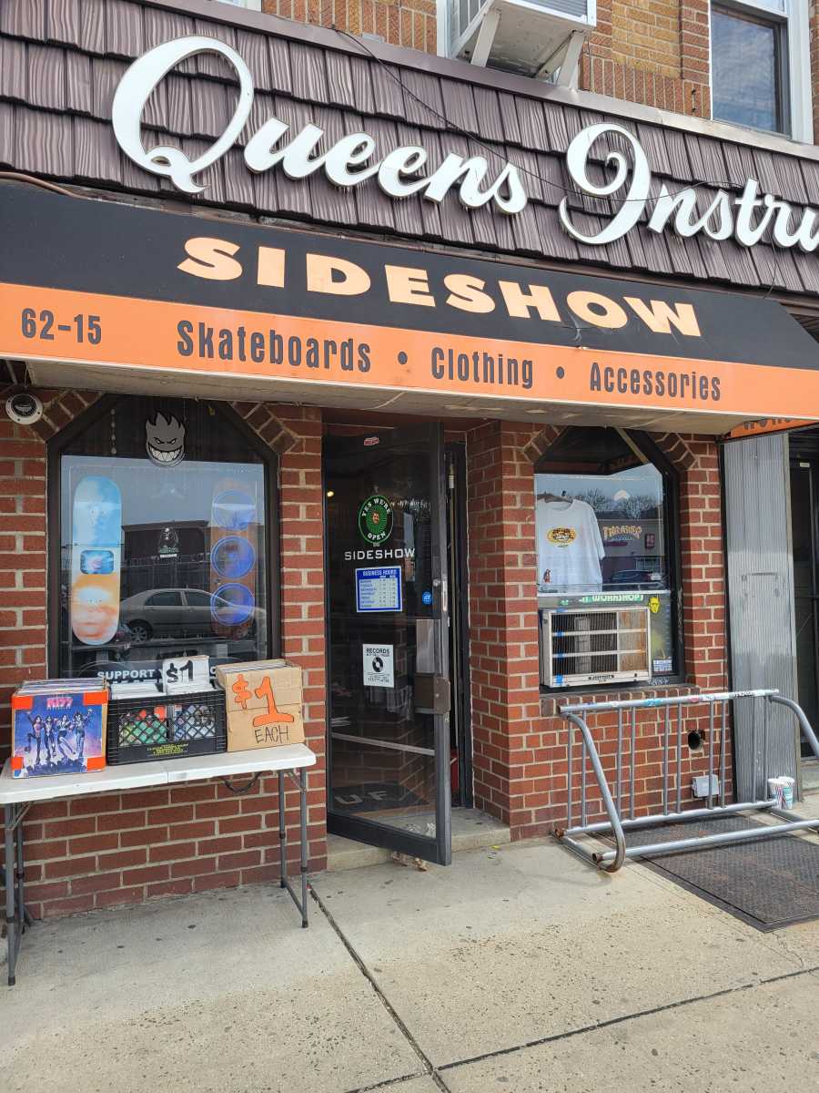 Tucked away between a car dealership and an auto mechanic on Fresh Pond Road, Sideshow NYC is easy to miss—but for more than two decades, the small storefront has quietly served as a hub of underground culture, skateboarding, and analog media in Queens.