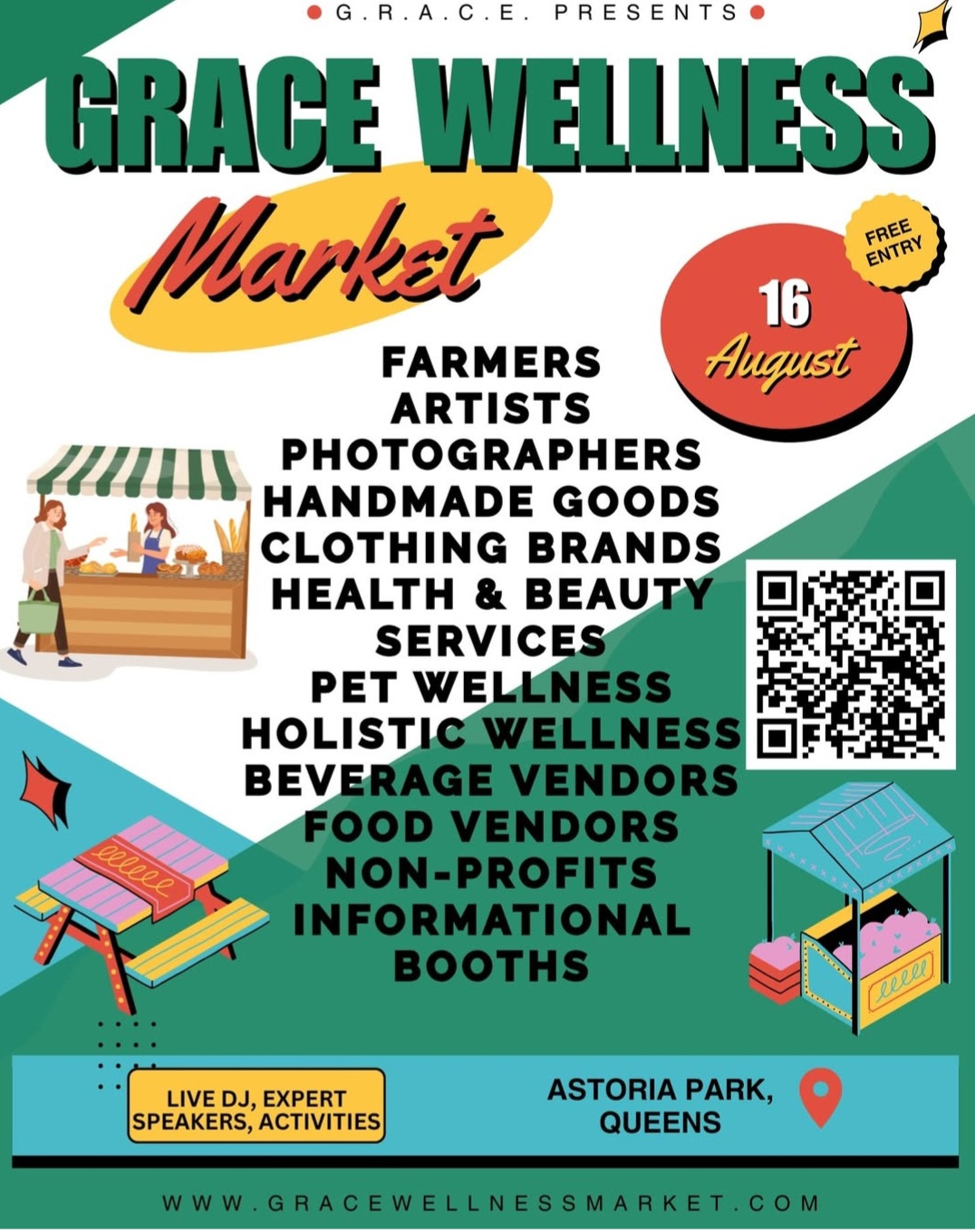 The G.R.A.C.E. Wellness Market is slated for this Saturday, Aug. 16 at Astoria Park. Photo credit: G.R.A.C.E Wellness.