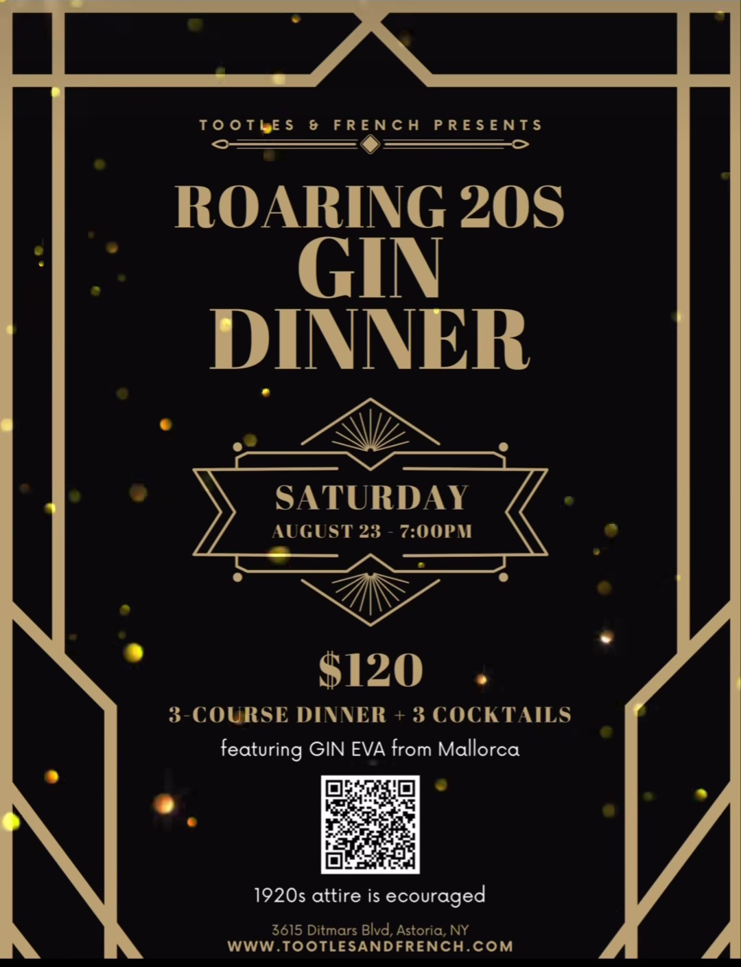 Get ready for an evening of glamour and excess at Tootles and French’s Roaring 20s Gin Dinner on Saturday, Aug. 23, at 7 p.m.