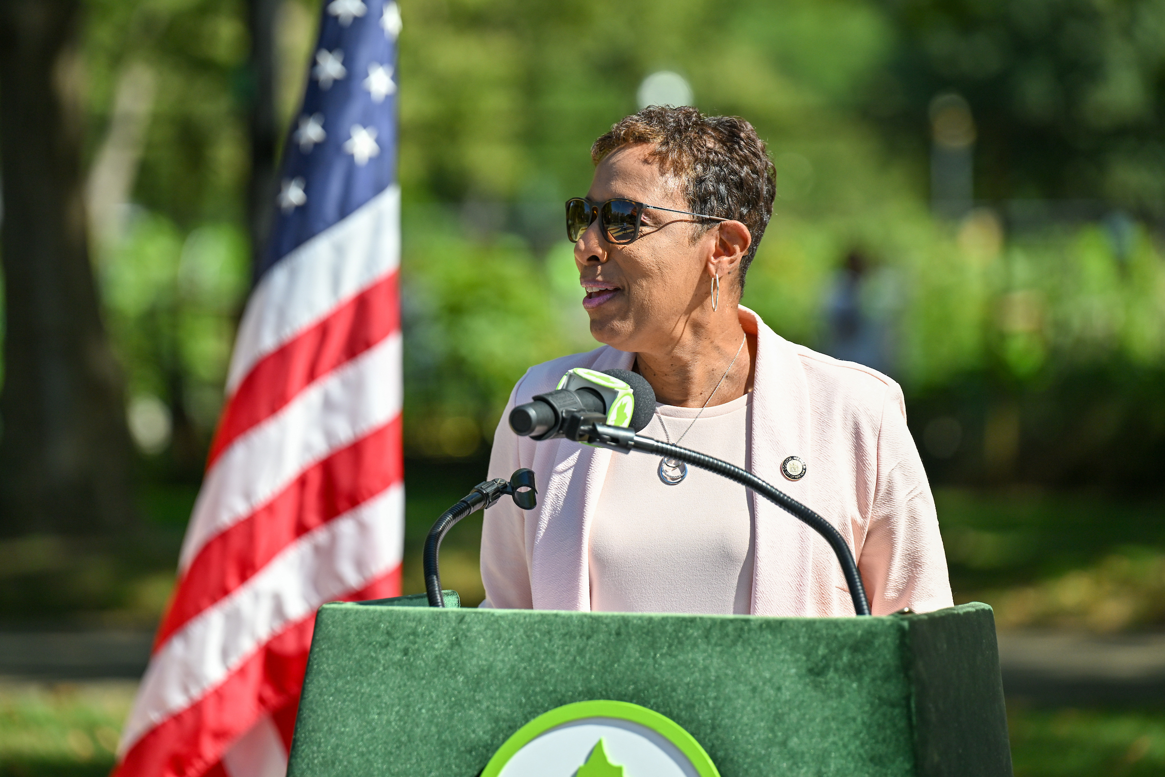New York City Parks Queens Borough Commissioner Jacqueline Langsam, New York City Council Speaker Adrienne Adams, Queens Borough President Donovan Richards Jr., and Queens residents were on hand to cut the ribbon.