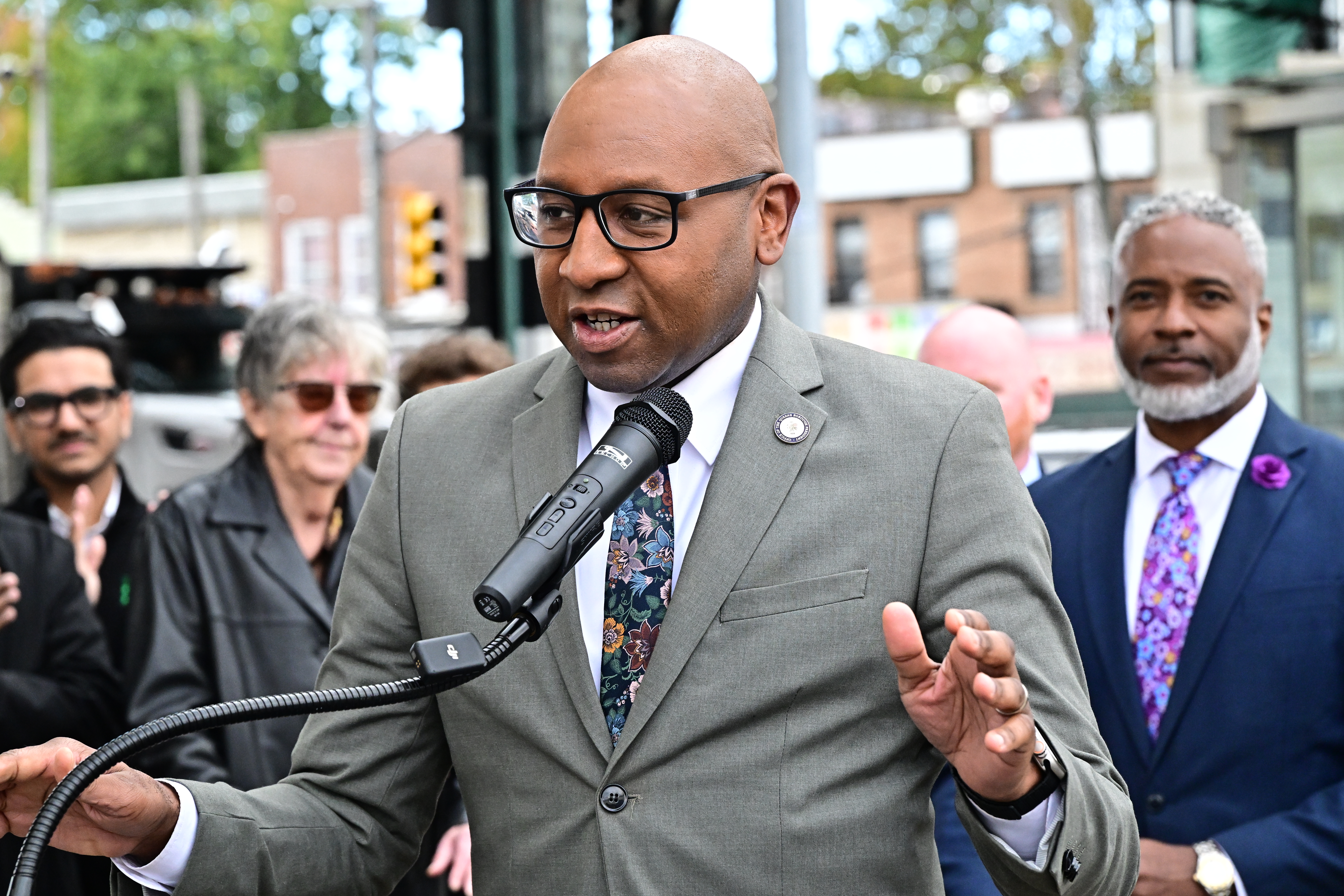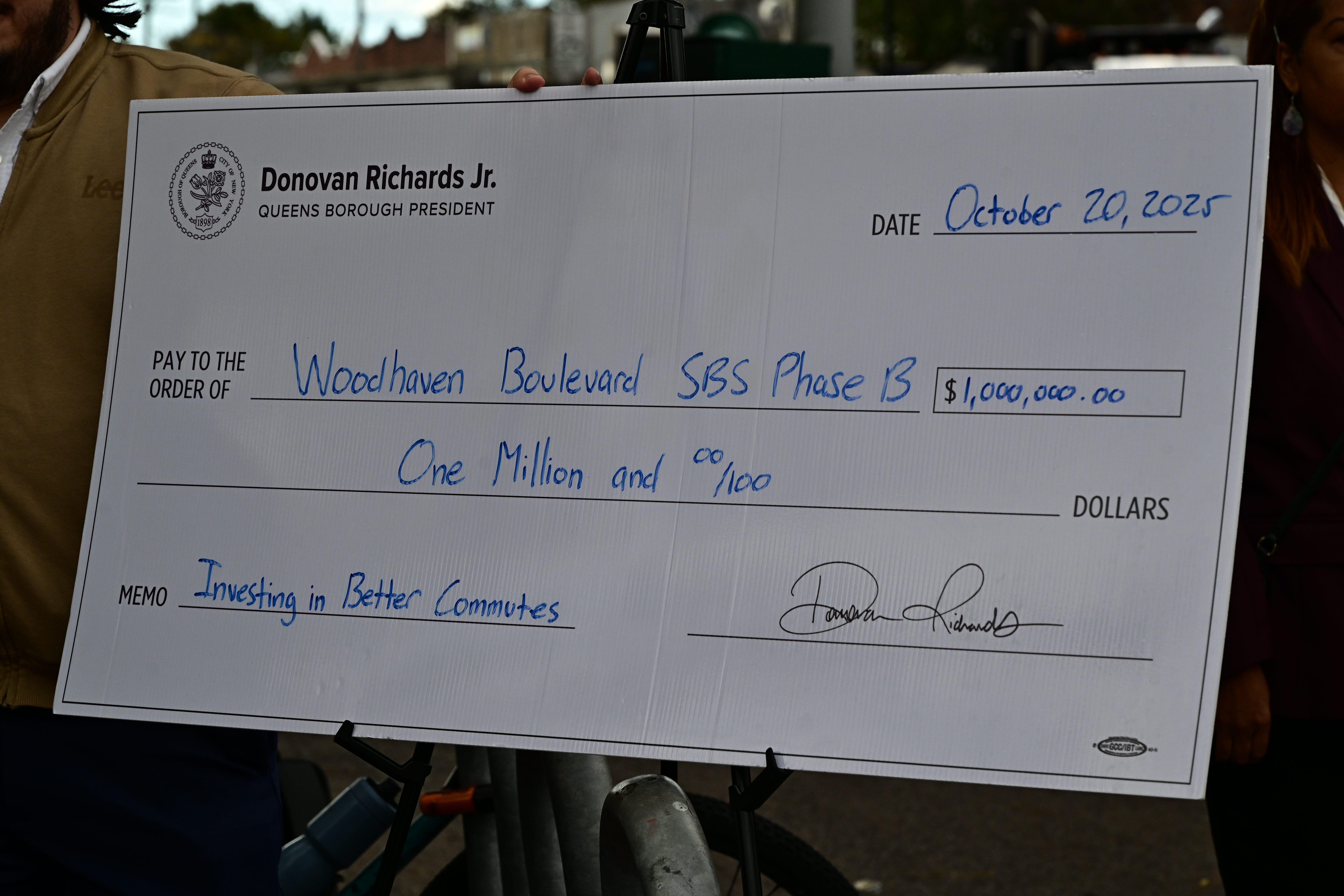 Queens Borough President Donovan Richards announced the allocation of $1 million in capital funding toward the implementation of Phase B of the Woodhaven Boulevard Select Bus Service on Monday, Oct. 20, at Corporal Ruoff Square in Ozone Park.
