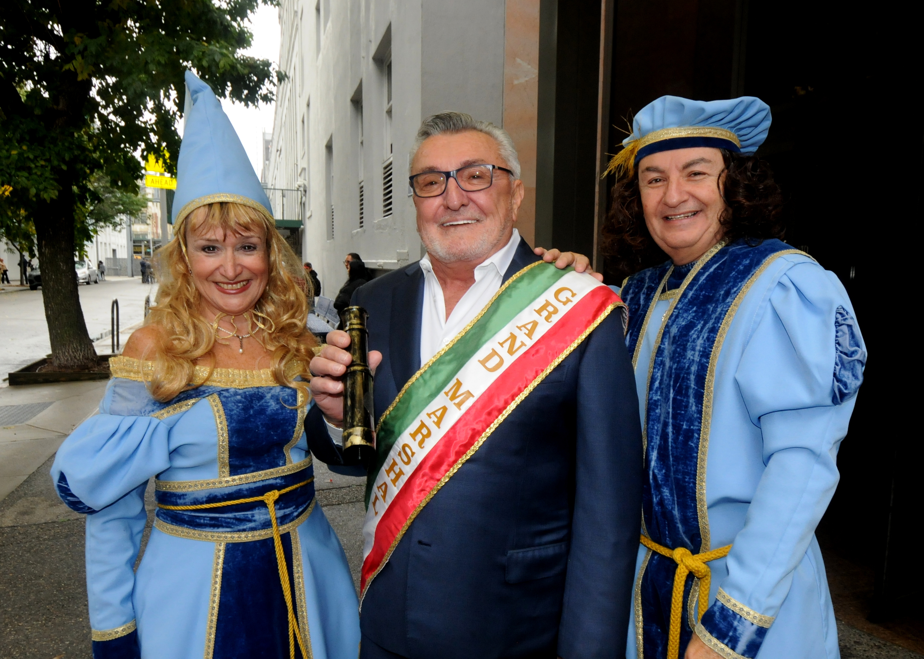 (Left to right) Mayra DiRico as Queen Isabella of Spain, Grand Marshal Antonio “Nino” Vendome and Joe DiRico as Christopher Columbus. Photo by Walter Karling