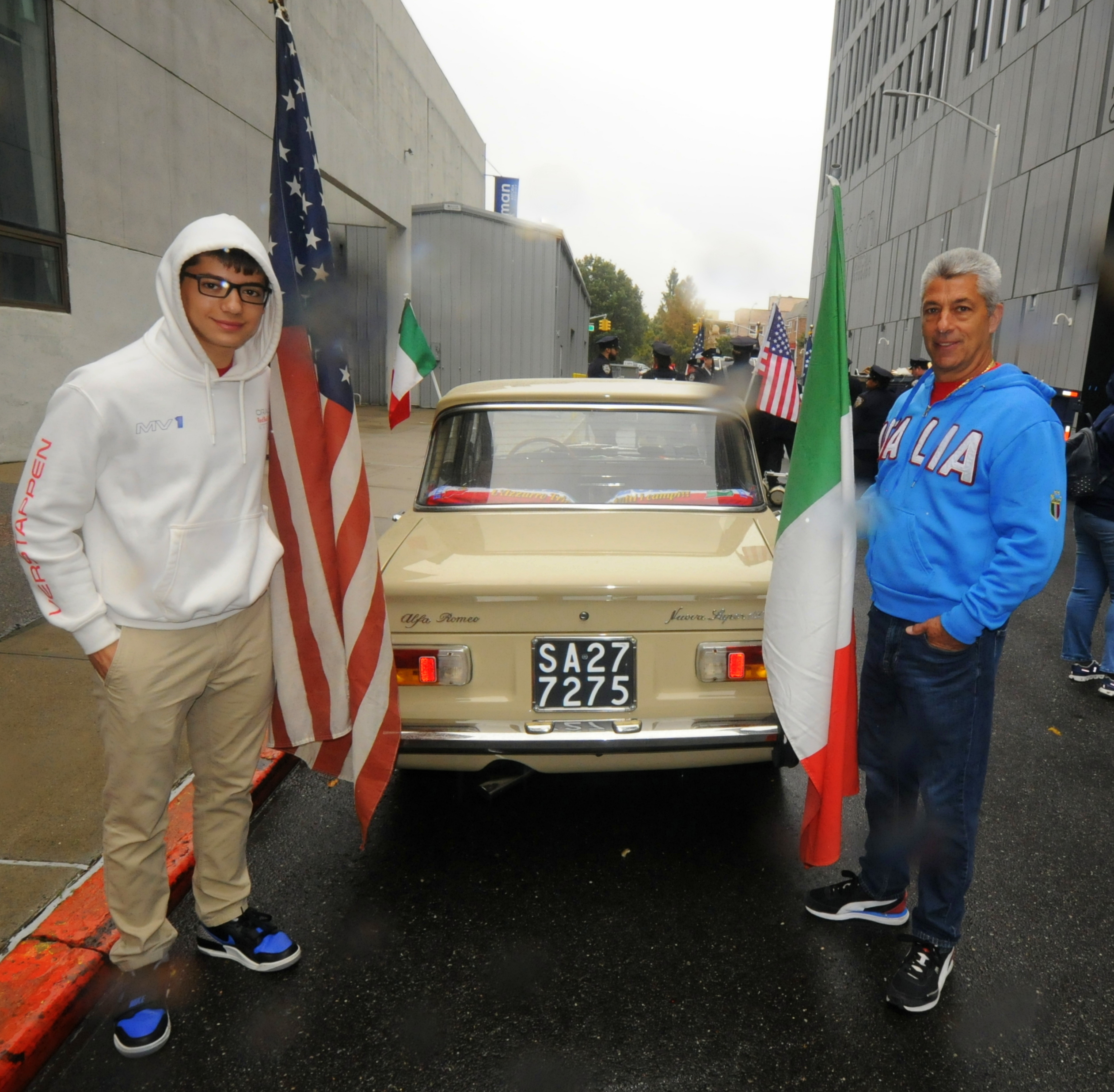 The rain could not stop attendees from enjoying the parade. Photo by Walter KarlingRalph Curatolo (right) and his son Gianfranco (left) drove a 1975 Alfa Romeo Giulia Super in the parade. Photo by Walter KarlingPhoto by Walter KarlingPhoto by Walter Karling