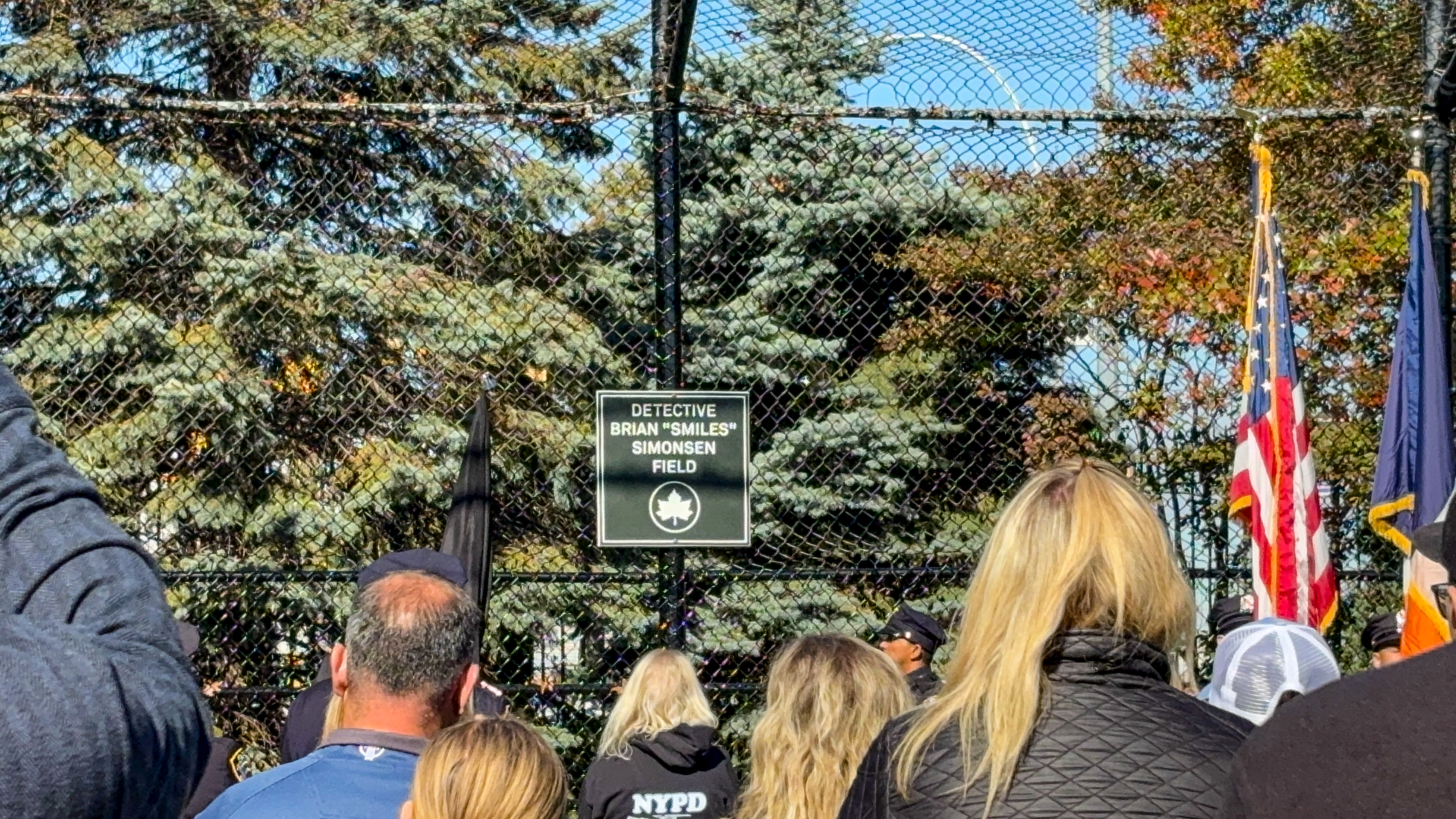 The NYPD’s 102nd Precinct gathered with elected officials, family members and community locals for a heartfelt tribute to the late Det. Brian “Smiles” Simonsen, a beloved neighborhood officer who served on the precinct’s frontline for 19 years. On Saturday, Oct. 25, at 11 a.m., the baseball field section of Victory Field in Forest Park was renamed in honor of Simonsen’s legacy.