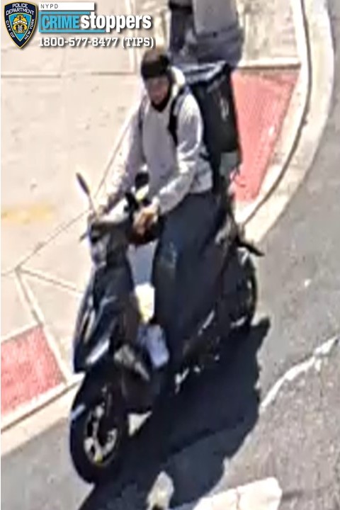 Investigators believe the same suspect targeted another senior a day earlier in Greenpoint, Brooklyn. The 70-year-old victim was walking near the intersection of Bayard Street and McGuinness Boulevard at around 1:45 p.m. on Thursday, Sept. 18, when he was approached from behind by the chain-snatcher riding the same dark-colored moped and grabbed his gold necklace from his neck, police from the 94th Precinct reported. The suspect rode off with the chain, which is worth approximately $1,000. The victim was not injured.