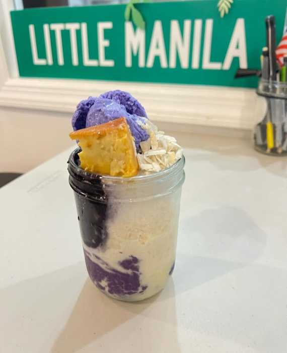 Purple Dough is a Filipino-inspired cafe offering vegan and gluten-free options, including delicious treats such as their baked cake donuts with flavors like calamansi, Thai tea, ube and coconut pandan. The cafe also offers halo-halo, a traditional Filipino treat, an ice cream cake donut sandwich and a variety of drinks, including bubble tea and fruit shakes.