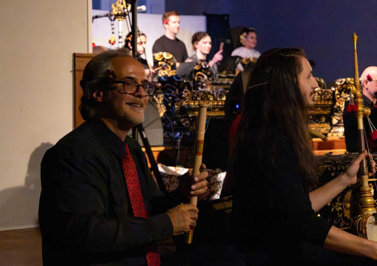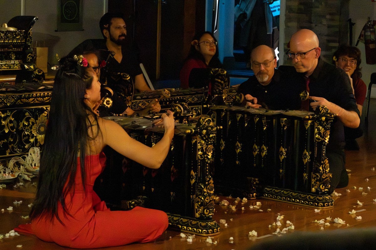 Gamelon is traditional Balinese music played by an orchestra-esque ensemble of musicians on wind, string and wood instruments in time with accompanying dancers. Lo Mellin first joined DS over a decade ago, and fell in love with the music and a fellow musician in the group: her husband, Joel. Lo Mellin started as a classically trained flautist when she studied the bamboo flute in college, but said she often felt performance anxiety while on-stage by herself and noticed it could be heard within the notes she played. Finding Balinese Gamelon, which allowed her to play with a group and is more forgiving in nature due to the inherent “distortions” present in the style, freed her up to begin enjoying performances.
