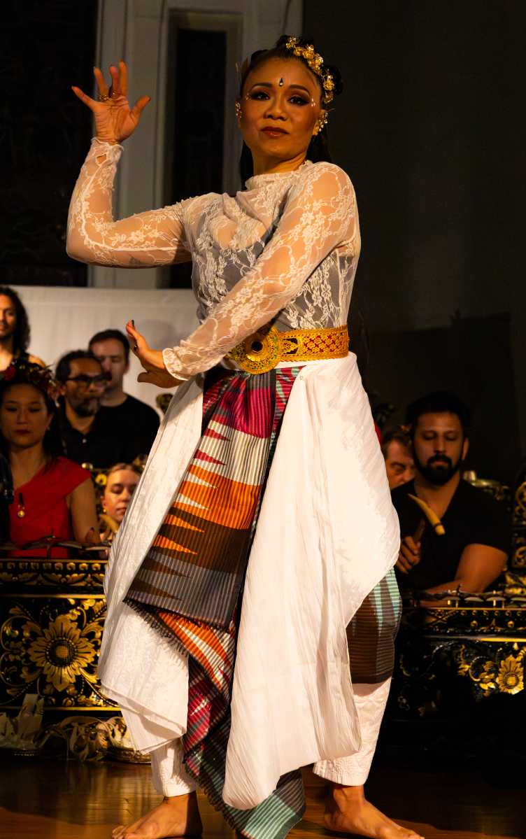 The deeply meditative music gets a majority of its sound from the gendèr, a Balinese xylophone, and the bonang, a collection of small gongs, to create a symphony that quickly goes from the sound of crashing thunder to drizzling rain.