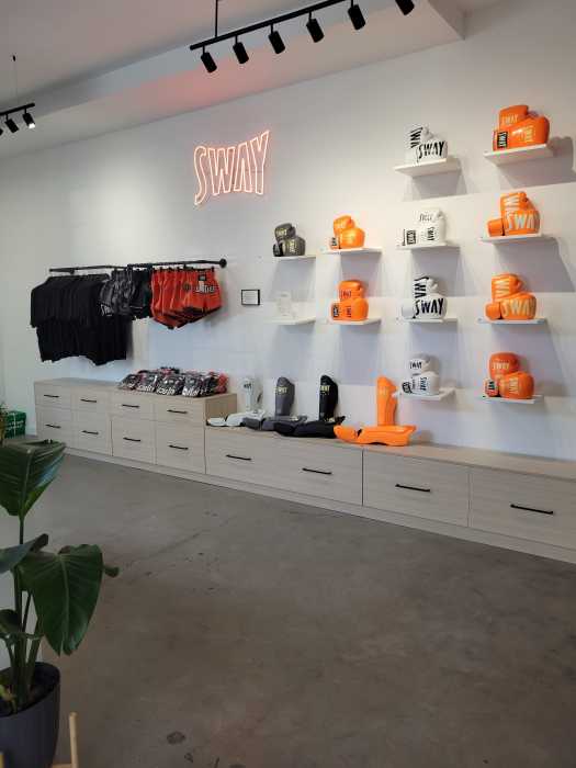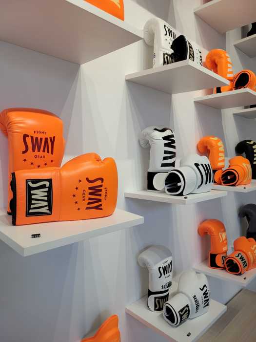 “We saw an opportunity to give people a place and noticed there was a gap to allow people to actually come and feel what worked best for them,” said Mariam Ezz, the store’s CEO and co-owner. “It’s a very personal thing to find out what kind of gloves to use-but the second part, which I think was more important, was creating our own brand, so although we do carry third-party brands, we really want to create our own brand and vision of what a combat sports brand could look like, so that’s how we came up with Sway.”