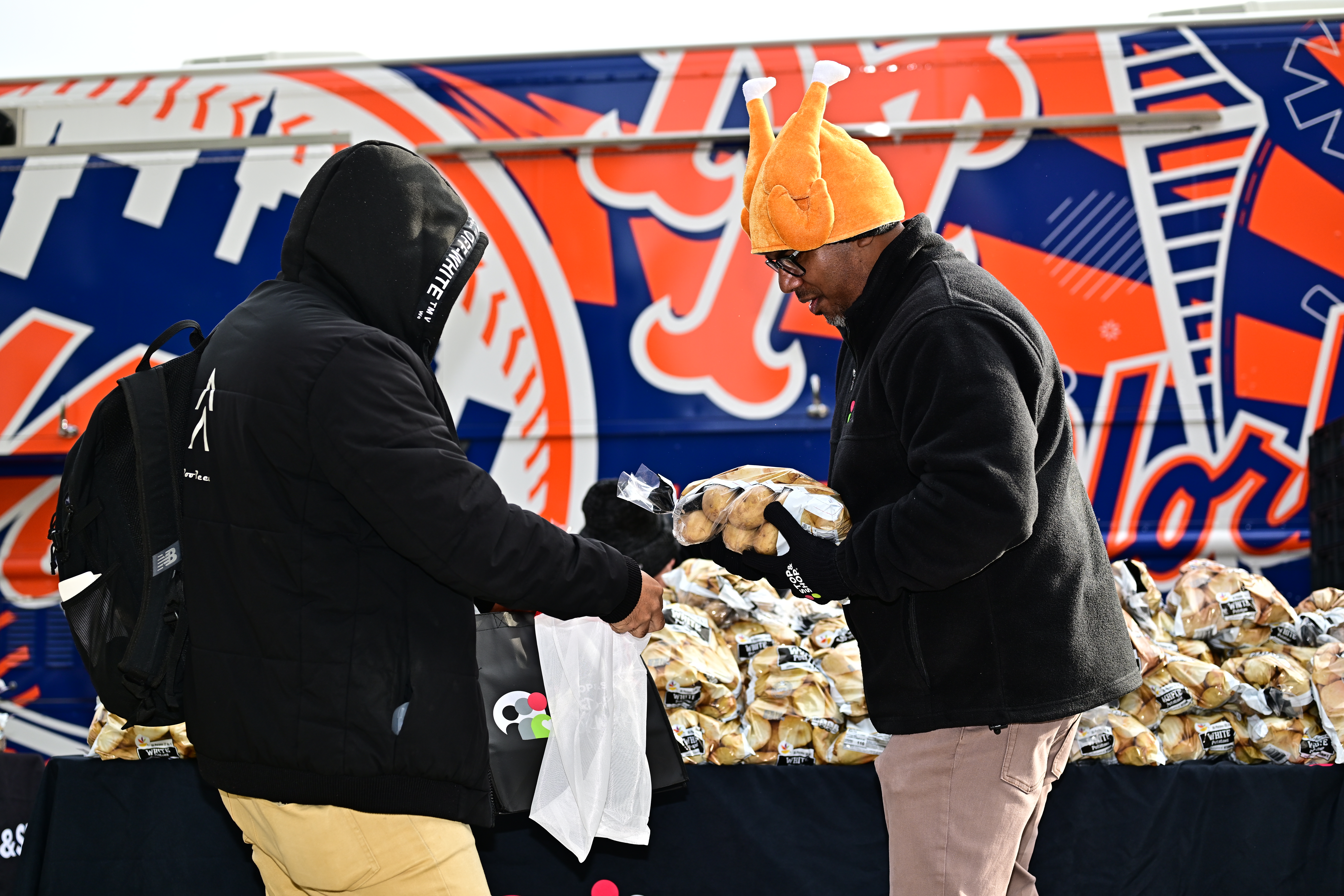 “It’s awesome to do this and give back to the community and just have families enjoy Thanksgiving,” Vientos said. “You’ve seen people smile and happy just to see us giving out [food], whether it’s apples, potatoes or turkeys. Everybody’s happy and having a good time.”
