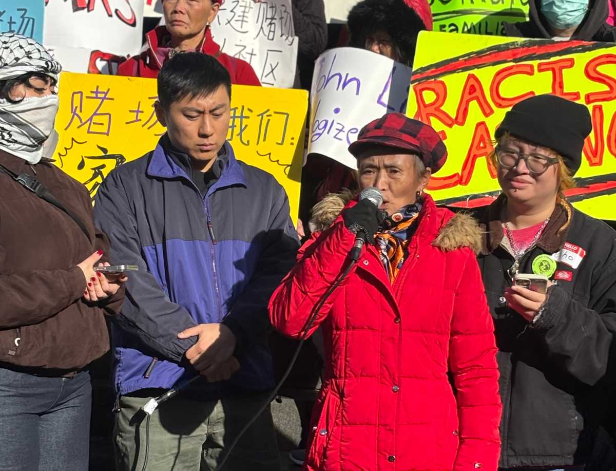 “My husband and my three sons fell into gambling,” said the emcee translating Qiu’s speech. “Gambling has destroyed my family and many families like mine. This is about our whole community. Yet Liu dared to claim that he represented us to support the casino. John Liu, if you don’t right your wrong, you should not be our representative.”