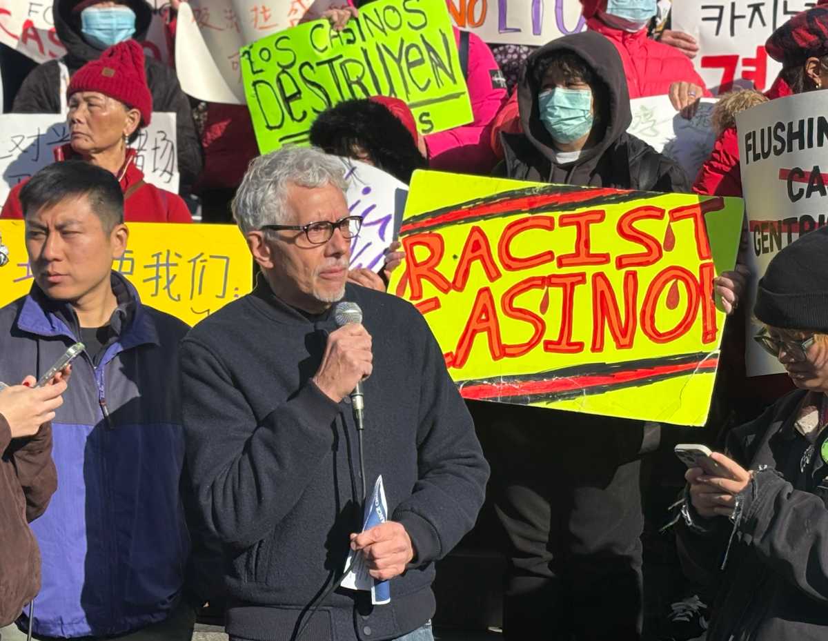 Bao Jin Qiu, a Flushing resident and retired home care worker, argued that it does not just impact the individual gambler, but it had consequences for entire families. She delivered a passionate speech in Mandarin, which was then translated by an emcee, about her family’s experience with gambling addiction.