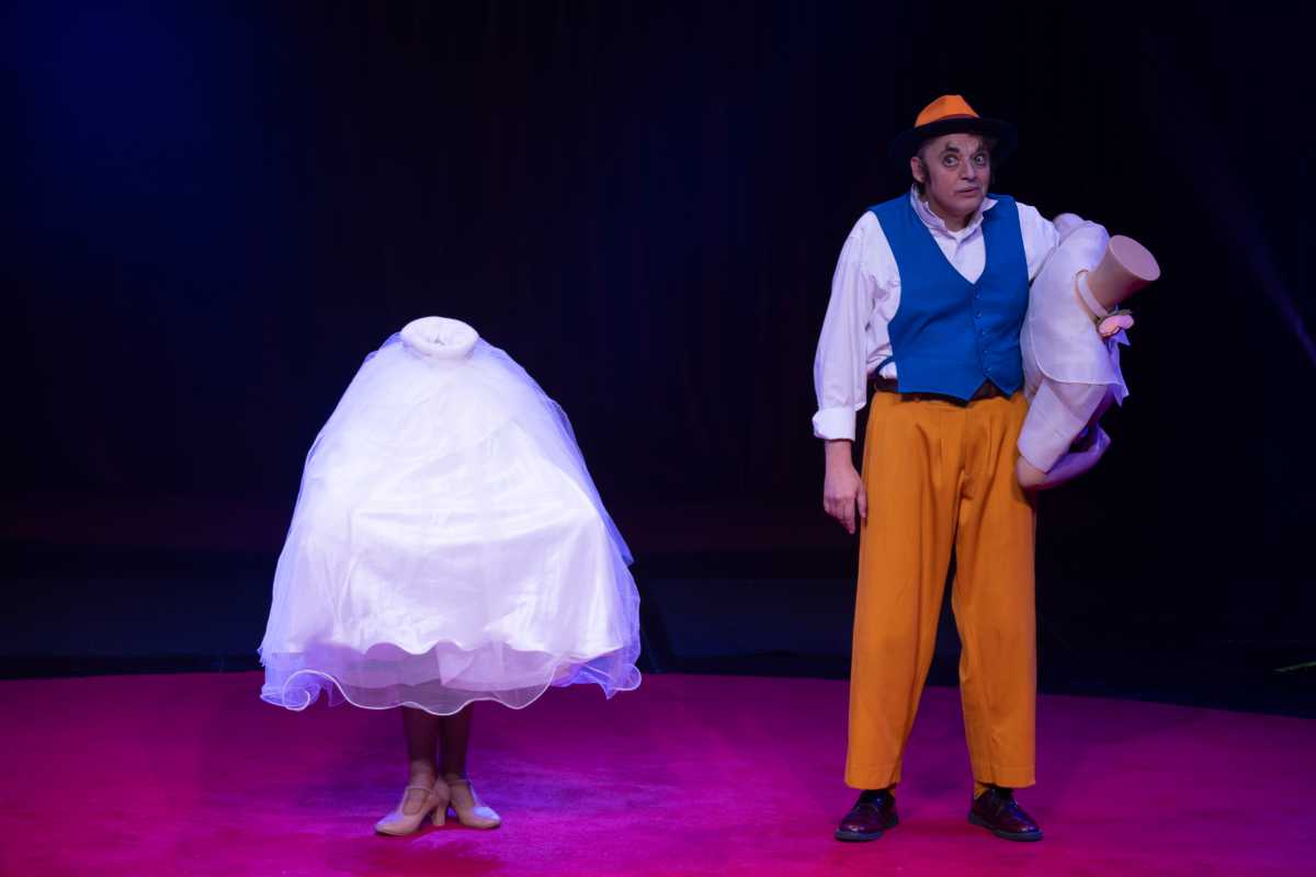 Though not your traditional clown with a full face of make-up, Usov quickly became a crowd favorite, running around the audience throwing popcorn and showering them with water during an avant-garde performance of “Singing in the Rain.” Spotting my camera, Usov ran over to me. I, and one very kind woman seated behind me, desperately threw our bodies over it as the audience howled at the clown’s antics.