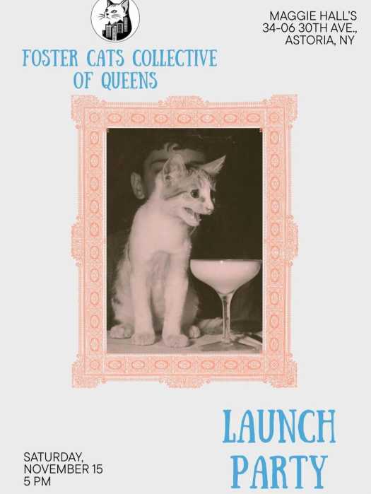 All paws on deck! The Foster Cat Collective of Queens (FCCQ) is officially launching Saturday, Nov. 15, at Maggie Hall’s with an evening of feline festivities to celebrate the group’s initiative.