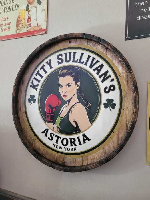 The bar’s name, Kitty Sullivan’s, is named in honor of her great-great-grandmother, with the logo showing a female boxer, paying homage to both her family’s history and a symbol of the sports bar’s fierce energy.