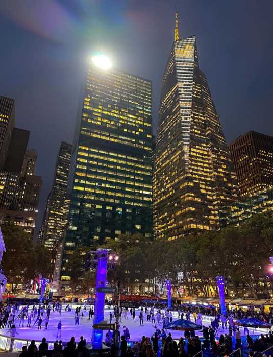 Bryant Park is a popular skating destination during the holiday season for its winter wonderland, which includes holiday shops, igloos available for booking, and special meet-and-greet events with Santa on weekends in December from the 6th through the 14th. While the skating experience can be a bit pricier than other spaces throughout the city, it can be worth it for those seeking a full holiday experience, offering a fun and unique outing with friends or family.