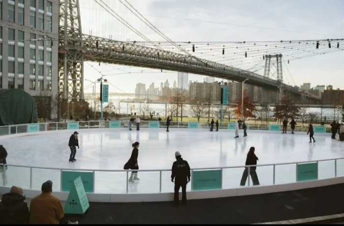 The skating rink at Domino Park offers a great opportunity to get into the holiday spirit with an outdoor skating rink set amongst the city skyline. The rink is presently offering half off on admission on select Wednesdays and Thursdays in December, courtesy of Verizon. After an afternoon or evening of skating, guests can indulge in hot, fresh pizza from Stretch Pizza, now open at Domino Square, and even book special events at the venue like birthday parties and other occasions.