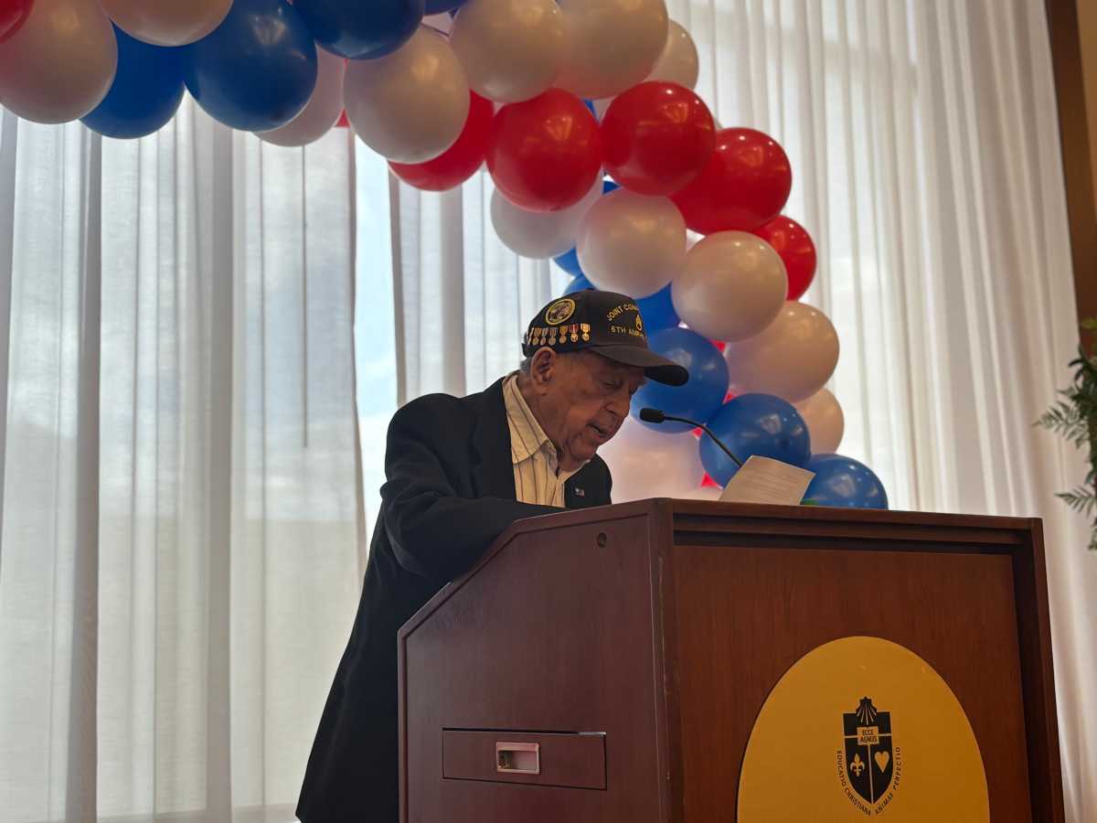 Sey Schwartz, a 99-year-old WWII veteran who was drafted to the army and deployed to Iwo Jima and Okinawa — both Japanese battle sites in the Pacific Theater that took place in 1945 — spoke at the luncheon and shared his harrowing experience in the Fifth Amphibious Force.