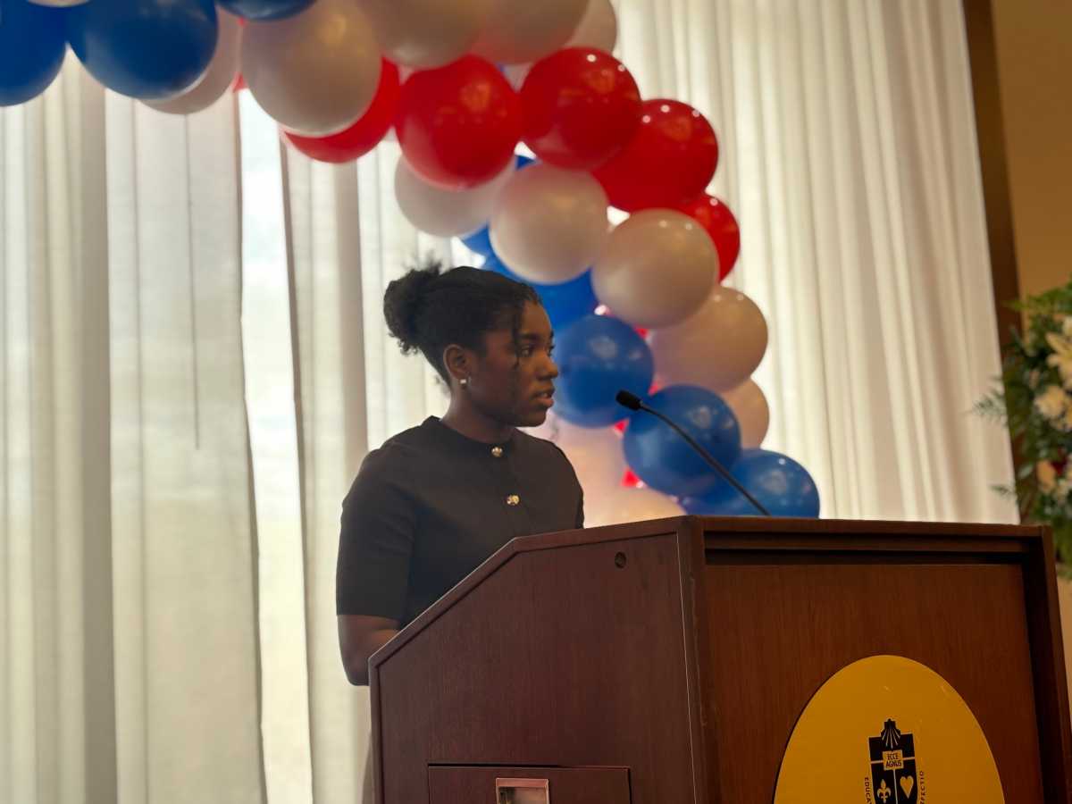 Over 100 attendees, including military veterans and members of the St. John’s Student Veterans Association, many of whom received or currently receive services from the Veterans Success Center at the college, gathered in the ballroom from 1:30 to 3:30 p.m. for a lunch of sandwiches, soft drinks and a vanilla cake.