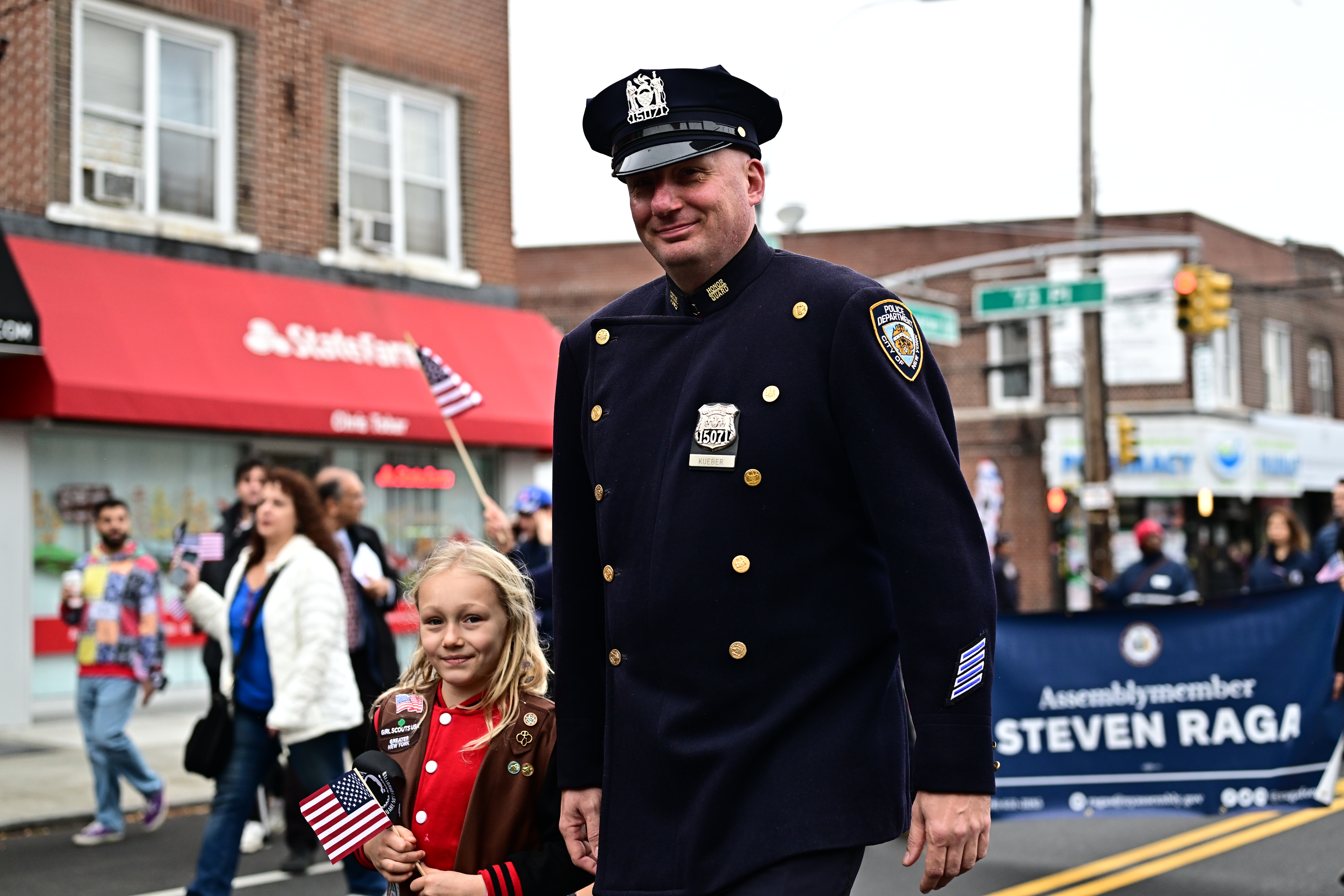 The grand marshal for the parade was Specialist Thomas A. Bullaro, a Middle Village resident who served during the Vietnam War. He was born in Sicily, Italy, before he and his family moved to the United States right before he turned 11. Upon turning 18, Bullaro tried enlisting in the U.S. Navy, but was denied because he was not an American citizen. He would later be drafted by the U.S. Army and, shortly before being deployed, he successfully became a U.S. citizen.