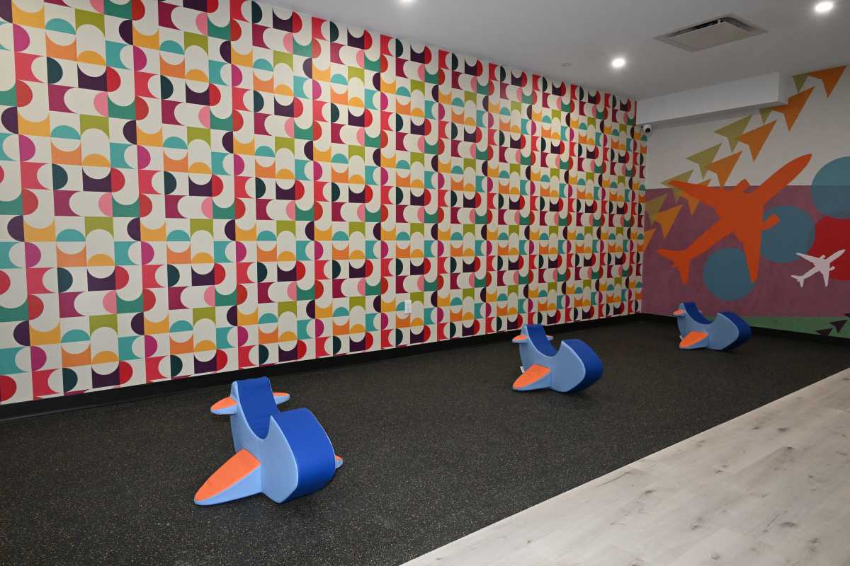 In celebration of the new affordable housing development, a mural was painted that spans nearly the entire height of the 12-story building. Danielle Mastrion, the artist who painted the mural, said she wanted the mural to reflect Queens and the residents who live there. She said she grew up near the Belt Parkway, so the area near JFK airport is sentimental to her.