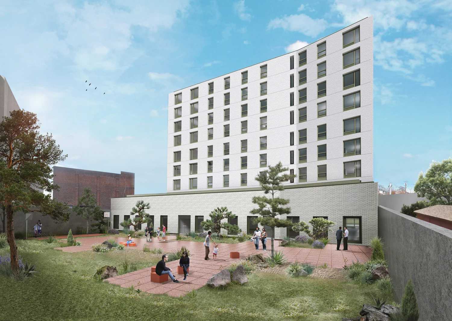 Among the other amenities available at the property to residents are shared laundry rooms, a fitness center, a residential lounge, a computer room, an attended lobby with security services and mail, bike storage and a multipurpose space for community programs, classes and recreational activities. There will also be a social services office staffed by members of the non-profit Not On My Watch, Inc. Additionally, there will be an outdoor recreational courtyard with a children’s play area, seating areas and a landscaped yard.
