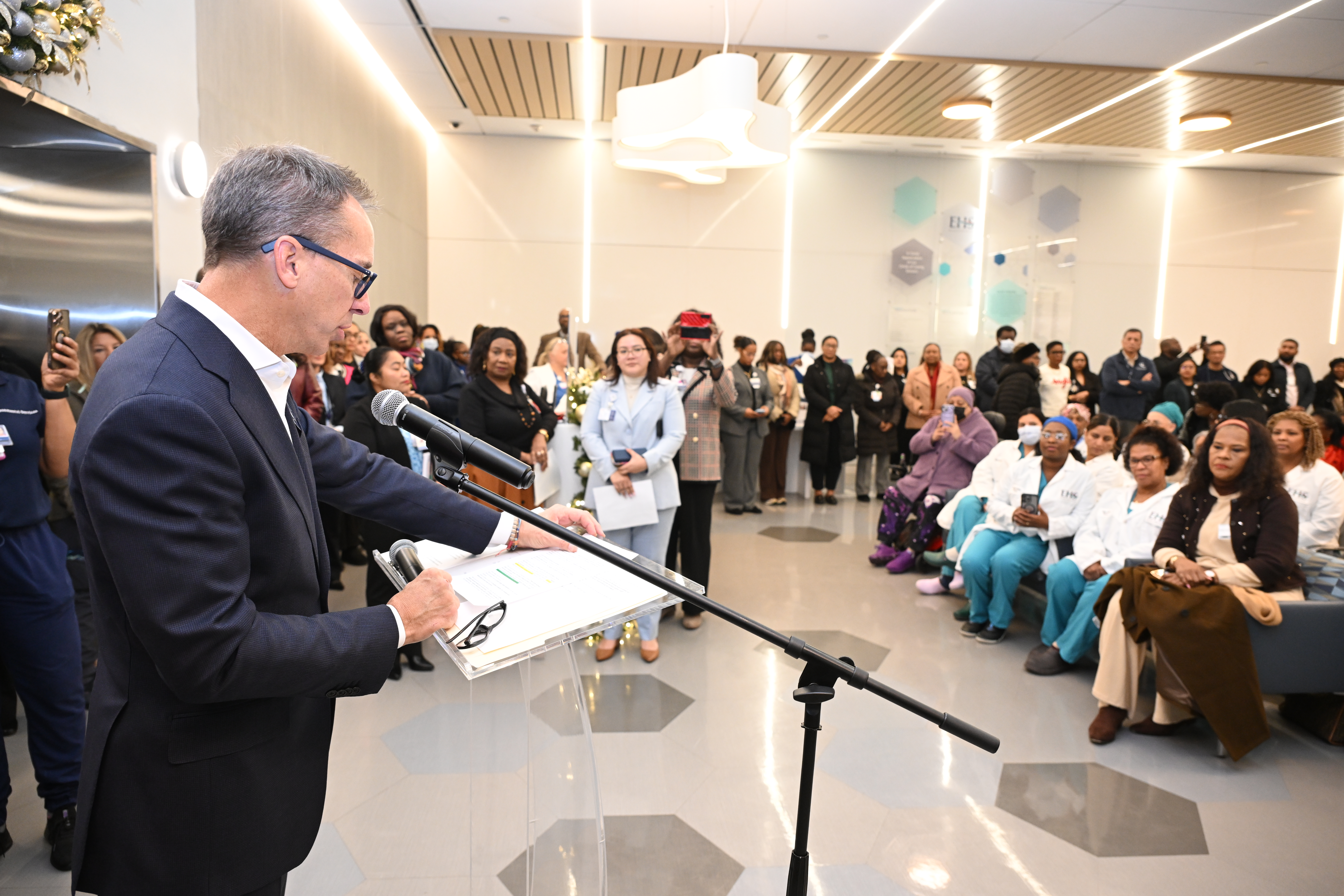 “Today is about more than turning on a set of lights. It’s about who has gathered under them. Our team members, our patients and families, our neighbors, partners and friends in the community,” Morrish said. “To our EHS team members, those here today and those caring for patients inside this hospital and our ambulatory care centers, I say thank you. Thank you very much for all of your due diligence and hard work within the community, your resilience, professionalism, kindness and all the unseen moments when you go that extra mile are in the heart of this organization. To our community members and partners, our neighbors, elected officials, community organizations, faith-based leaders, police and friends, thank you for trusting Episcopal Health Services.”