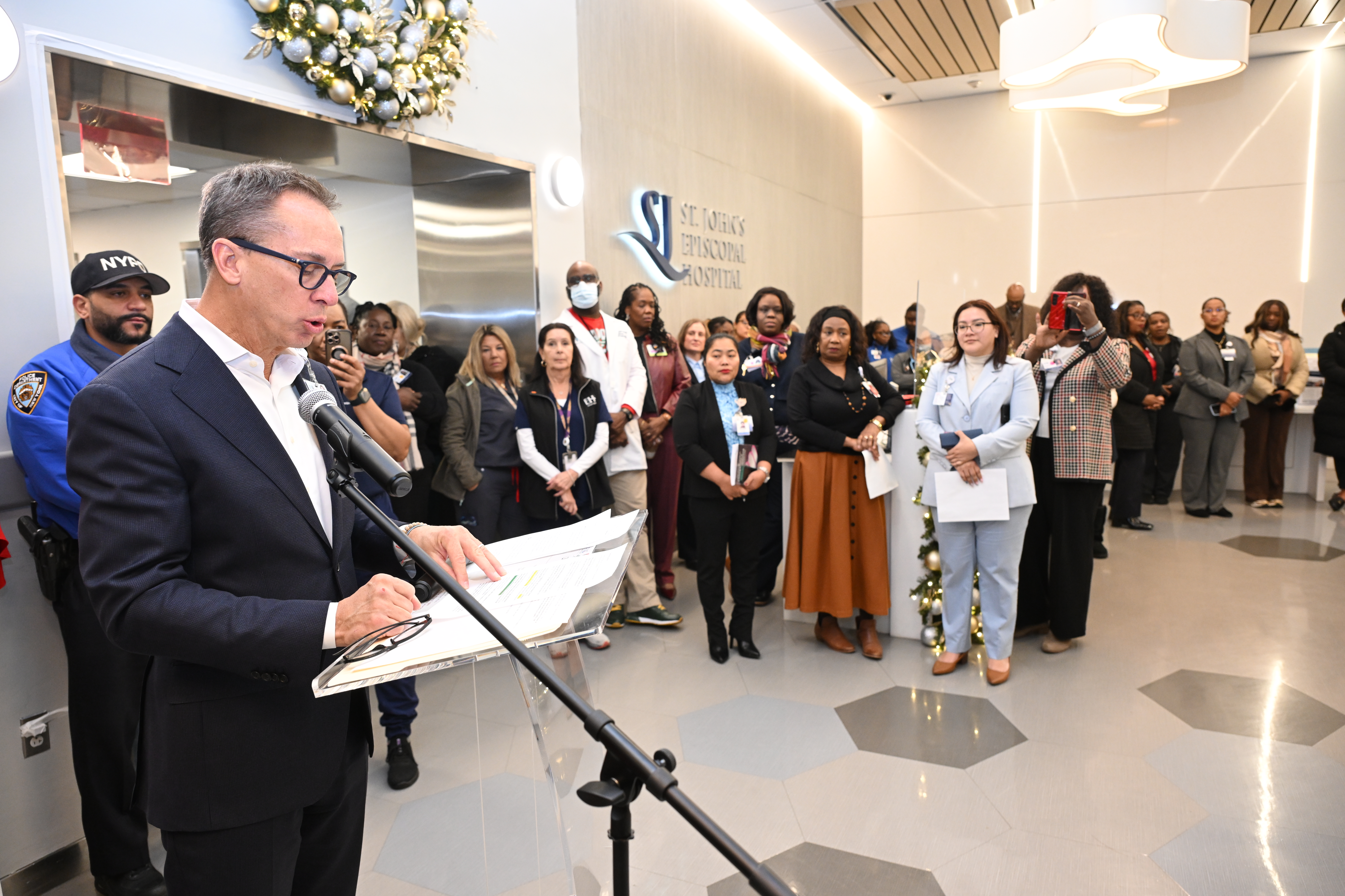 In celebration of the holiday season, Episcopal Health Services hosted a Christmas tree lighting celebration on Friday, Dec. 5, at St. John’s Episcopal Hospital, located at 3-27 Beach 19th St. in Far Rockaway.