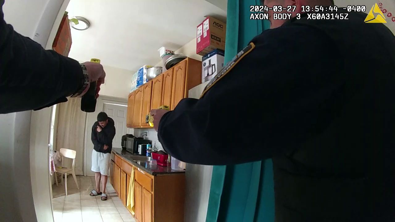 According to the OSI report, the officers ran up the staircase to the family’s second-floor apartment while continuing to ask the brother questions about Rozarios, including, “Is he high on drugs?” and “Did he take anything?” When the officer entered the apartment, they encountered Rozarion and his mother standing at the entrance to the kitchen by the front door. The cops asked if anyone else was in the apartment. At 1:53 p.m., Rozario went into the kitchen, opened a drawer, and took out a pair of scissors. He then walked towards the cops with the scissors in his hand, while his mother attempted to hold him back.