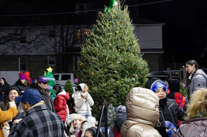 Addabbo, Assemblymember Stacey Pheffer Amato and Mamitas Ices were the primary sponsors of the event, though plenty of local businesses chipped in to purchase the presents and food. Mamitas Ices Managing Partner Natalie Romones, dressed in her largest winter coat, attended the lighting with two of her sisters, as the Romones’ family grew up in Ozone Park and sponsored the event for several years now. Though known for their flavored ices, Romones joked the hot chocolate they provided was likely much more preferable on a cold night.