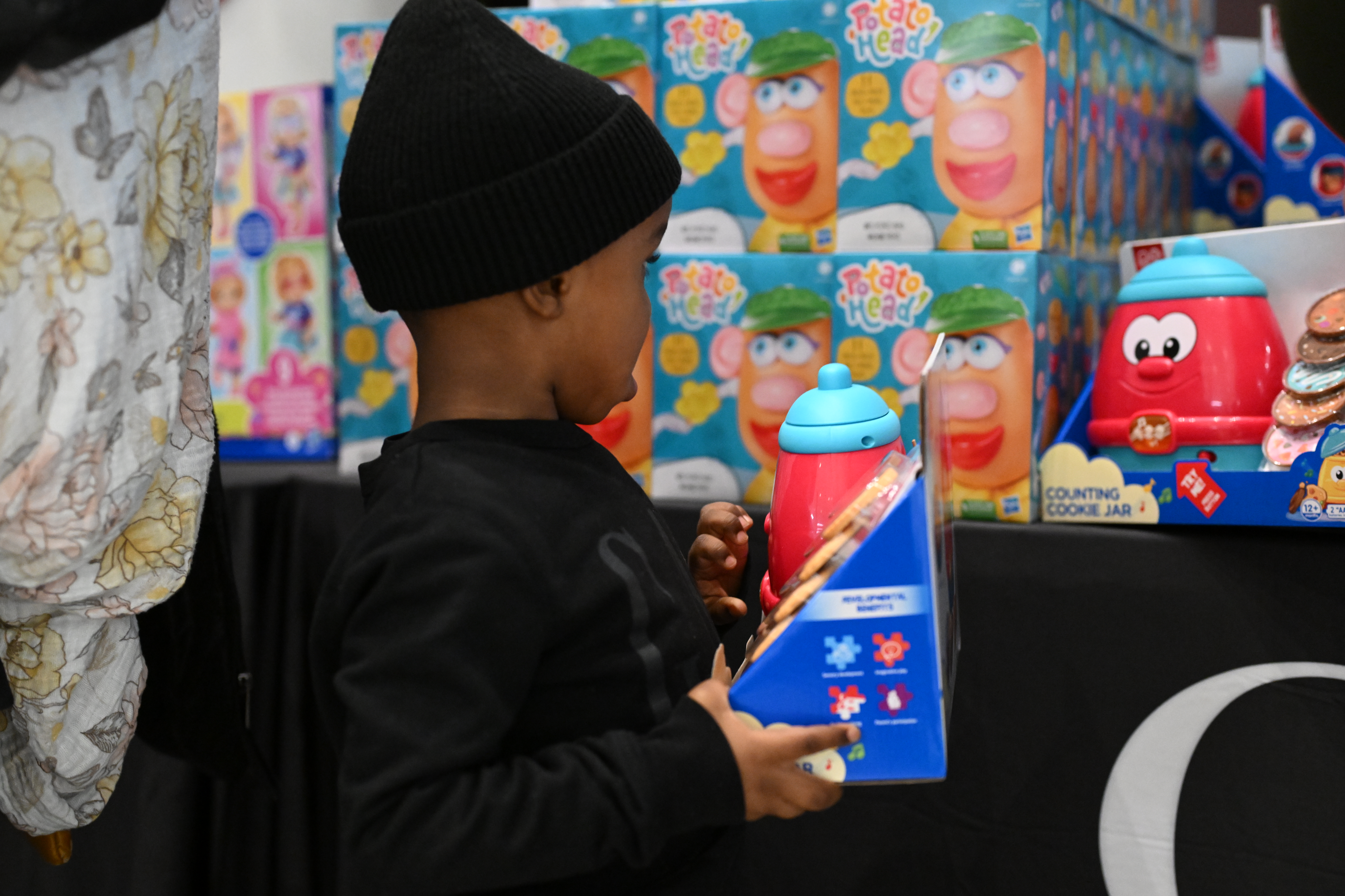 Families were invited to pick from the wide variety of free toys on hand, which included Mrs. Potato Head, board games, dolls and more.