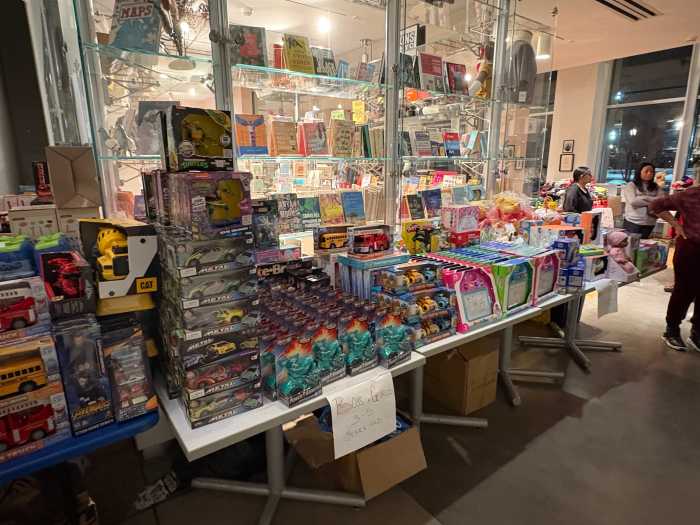 Well over 100 revelers came out to show donate items and enjoy the large buffet of food hot chocolate, artmaking with artist Niceli Portugal, and take pictures with Santa Claus and the Grinch. Children ages 0-10 in attendance even received a toy to “brighten their holiday season.”