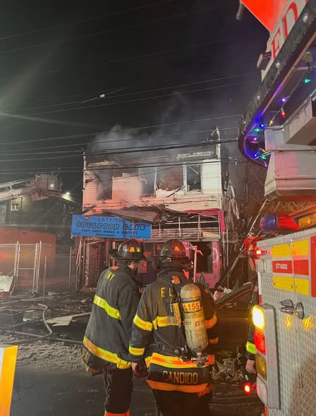 Inspectors from the city’s Department of Buildings were called to conduct a structural stability inspection of the structure that was home to the Catfish Soulfood Cafe. Inspectors found fire damage throughout the building, including a collapsed roof. In the interest of public safety, DOB placed a full vacate order on the structure due to the severe extent of the fire damage. DOB also ordered a tight board fence be erected around the structure due to the risk of further collapse.