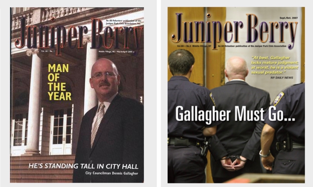 Gallagher responded in kind by organizing a rival community group, the Middle Village Maspeth Civic Association. In September 2006, members of both groups clashed at a JPCA meeting where Gallagher’s attempt to speak was turned aside, and his supporters engaged in shouting matches with JPCA members.
