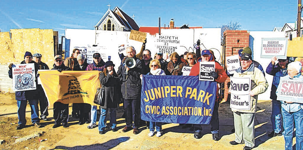 Maspeth Development LLC bought the land with the intention of rezoning the area for housing. The company would prematurely rip out the trees in preparation for the project. Determined, the JPCA and the Newtown Historical Society began the crusade to save St. Saviour’s — a battle they would wage for more than two years.