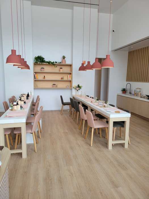 The spacious studio offers a perfect opportunity for community members to connect and enjoy events such as manifesting workshops, a book club, and other opportunities throughout the year, including dating events, mommy-and-me meet-ups, and more. Lin’s vision is to create a space where people can form meaningful connections and feel that the studio is a quick getaway to recharge.