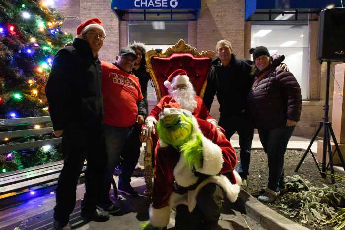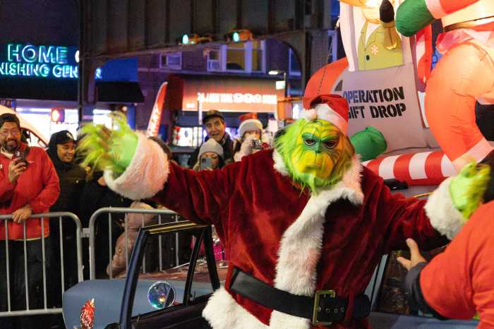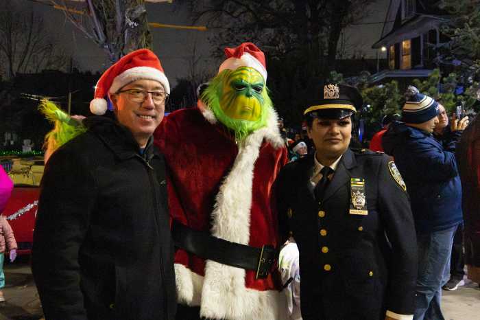 On the corner of Forest Parkway and Jamaica Avenue beneath the J train tracks, the Woodhaven BID and its sponsors hosted a local Christmas tree lighting ceremony that featured speeches from local public figures and the much awaited appearance of both Santa and the Grinch, with the help of Capt. Pratima Maldonado and the rest of the 102nd Precinct.