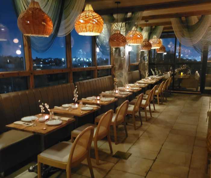 The venue is inspired by destinations such as Southern Italy, the islands of Greece, and coastal Morocco. With each table accompanied by a different view of the city skyline, the restaurant is perfect for date night, meeting with friends or a special occasion.