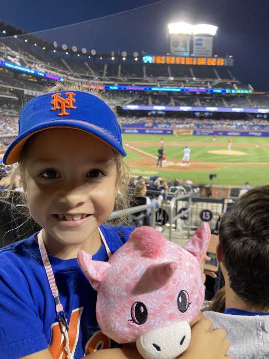 Alice Klingman, a seventh-grade student at the Baccalaureate School for Global Education and a born-and-raised Astoria resident, was selected after submitting her artwork of Mets Dog, a well-known pit bull named Sushi who greets fans outside Citi Field for this year’s contest theme, “400 Years of Dogs in New York City,” where students submitted original artwork highlighting the history and diversity of NYC dogs. As a lifelong Mets fan, Sushi seemed like the perfect subject, as the canine celebrity has become quite known by New Yorkers and Mets fans all over who’ve met the furry fan outside the stadium.
