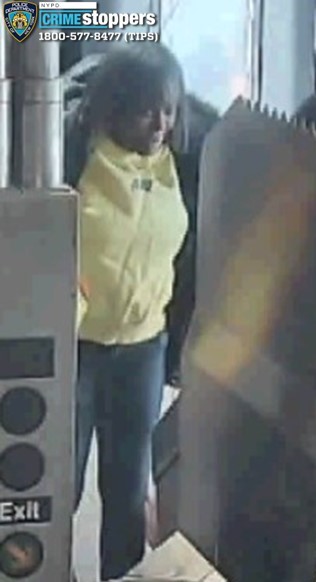 The NYPD released surveillance images of the suspect on Wednesday and is asking for the public’s help in identifying her. She is described as having a dark complexion and was last seen wearing a black winter jacket with a fur-lined hood, a yellow sweatshirt and blue jeans.