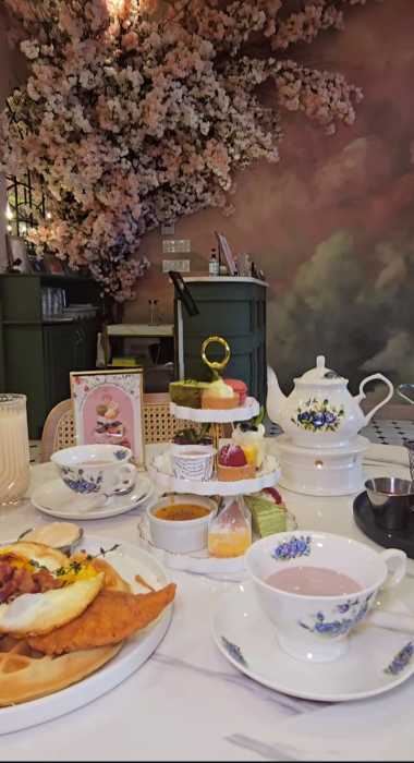Prince Tea House is an Asian-European fusion establishment filled with flowers, cozy seating, and chandeliers, offering a variety of desserts, brunch, and afternoon tea. The service features assorted mini pastries, finger sandwiches, scones, and hot tea served in an ornate teapot with flowers. Afternoon tea is $35 per person and offers the option to add from their regular menu at a separate cost. The unique experience is a great mood booster and is very budget-friendly for a weekend activity.