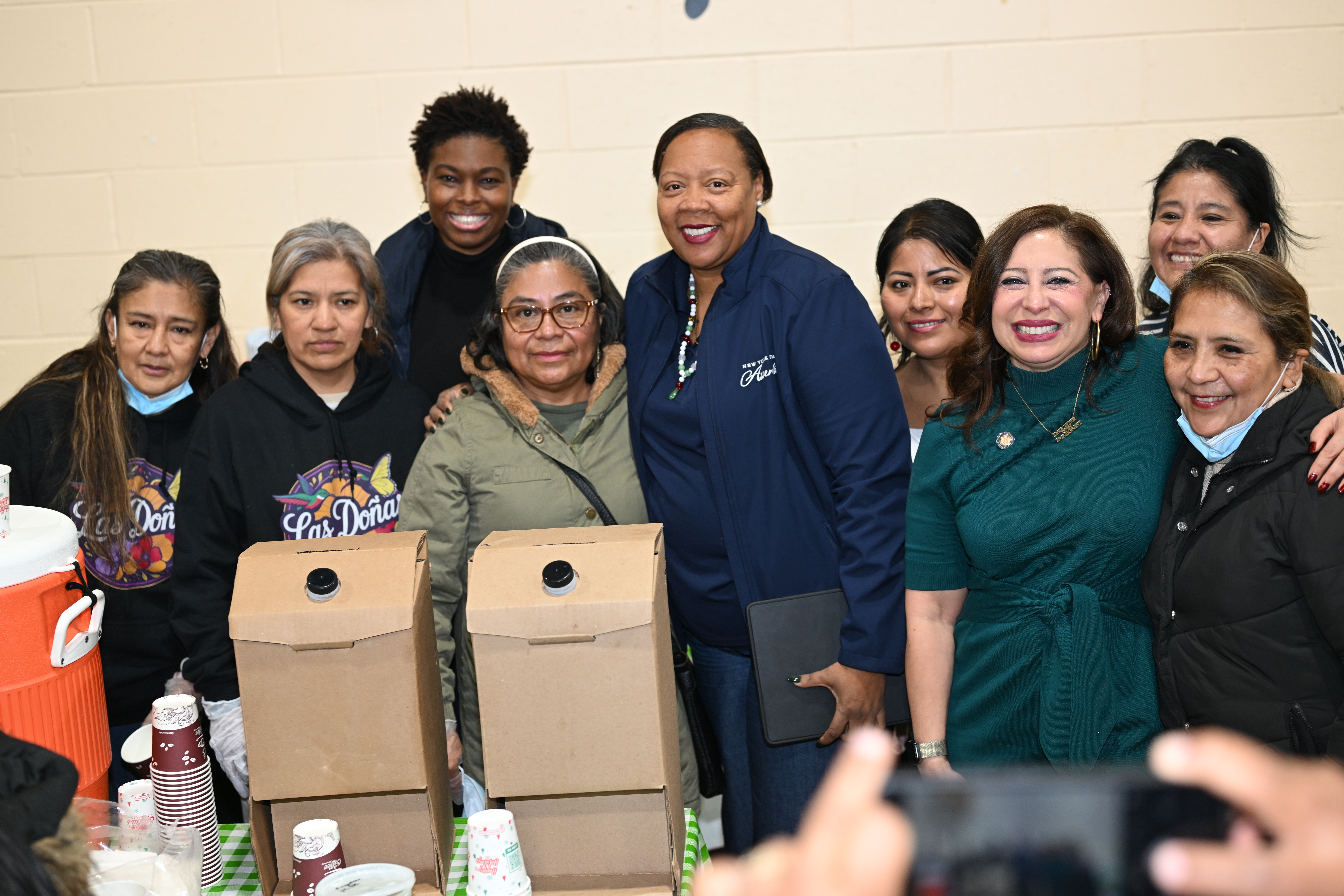 Council Member Shanel Thomas Henry (third from left) and Rep. Jessica González-Rojas (third from right) were among the local elected officials on hand for the Three Kings Day celebration hosted by Assemblymember Larinda Hooks (fifth from left). Photo by Ramy Mahmoud