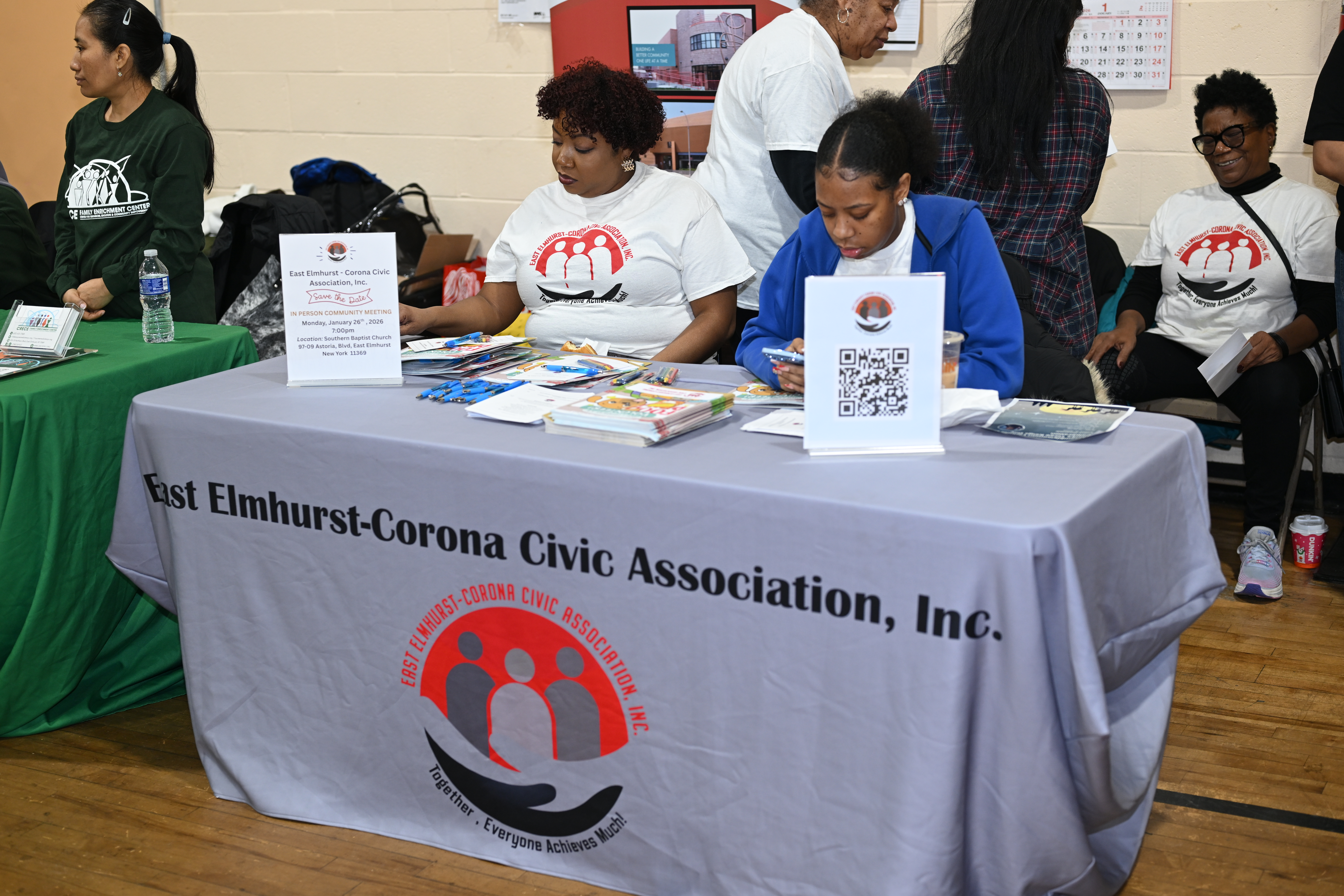 Several local organizations had tables set up to offer attendees resources and information. Photo by Ramy MahmoudPhoto by Ramy MahmoudThe East Elmhurst-Corona Civic Association was among the local organizations with tables set up at the event. Photo by Ramy MahmoudNeighborhood Housing Services of Queens also had a table set up, offering valuable resources to community members. Photo by Ramy MahmoudRepresentatives from the CRECE Family Enrichment Center at their table. Photo by Ramy Mahmoud