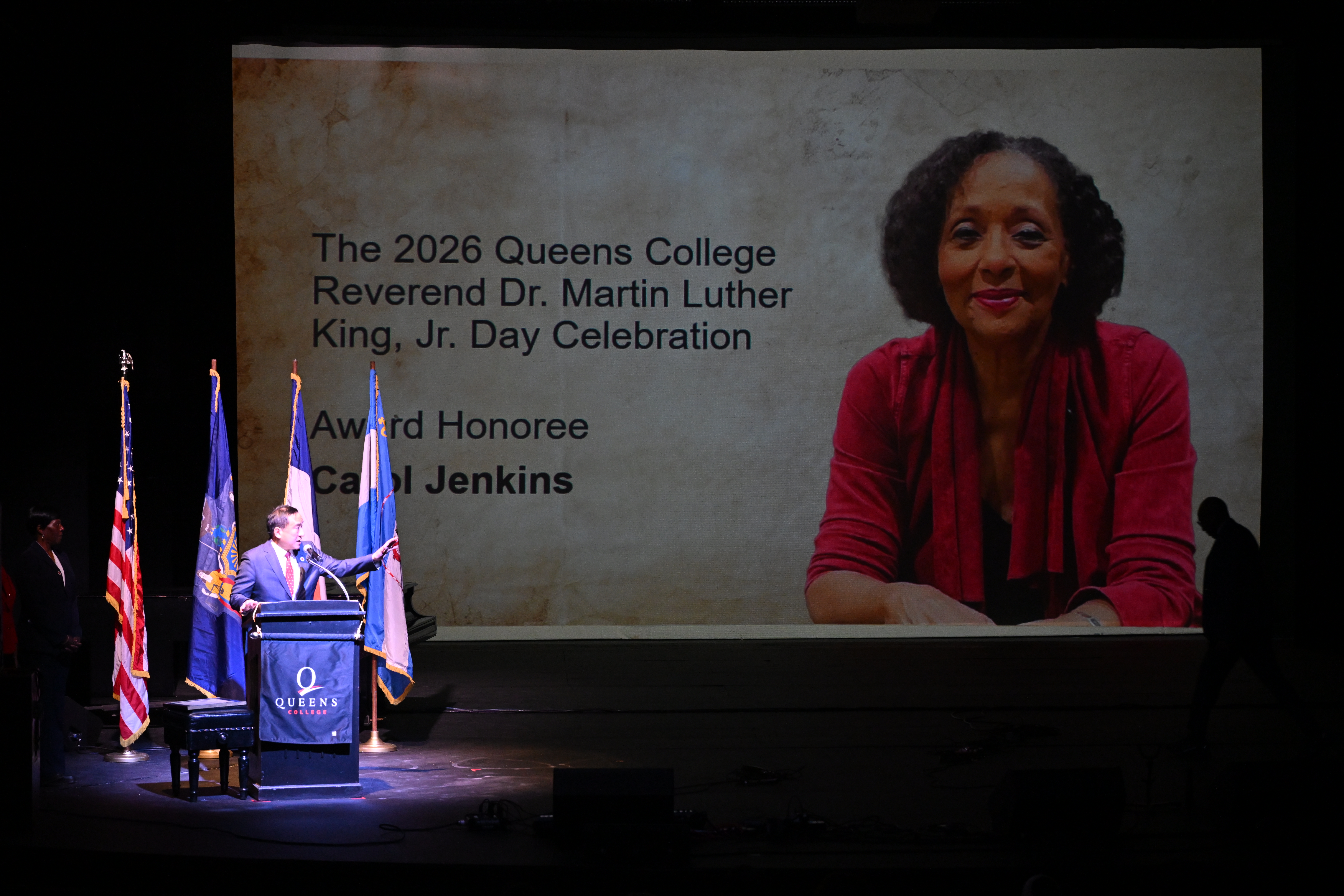 In addition to speaking at the event, Jenkins was also presented with the 2026 Queens College Reverend Dr. Martin Luther King Jr. Award, as well as a Proclamation from Richards.
