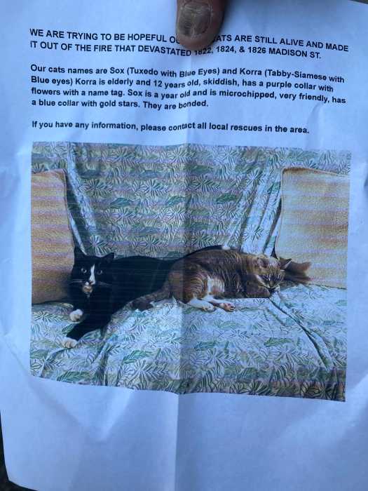 Brown, who had been up late doing paperwork, woke her mother and grabbed the essentials: wallet, phone, keys, a folder full of important documents and, of course, their cat. The two were the last family to make it out of their building, passing by the first floor apartment where flames spewed out from the window. In shock, Brown fumbled with her phone to call 911 standing across the street with her neighbors.