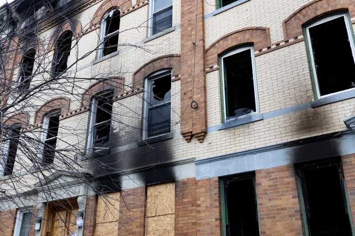 Two days later, scorch marks covered the façade, windows remain shattered and one building’s entire roof is collapsed. During the battle with the fire, out of the 220 fire fighters who aided in the effort, five were injured including one who was struck with an air conditioner that fell from the building. According to one FDNY first responder, all five received treatment and are progressing well.